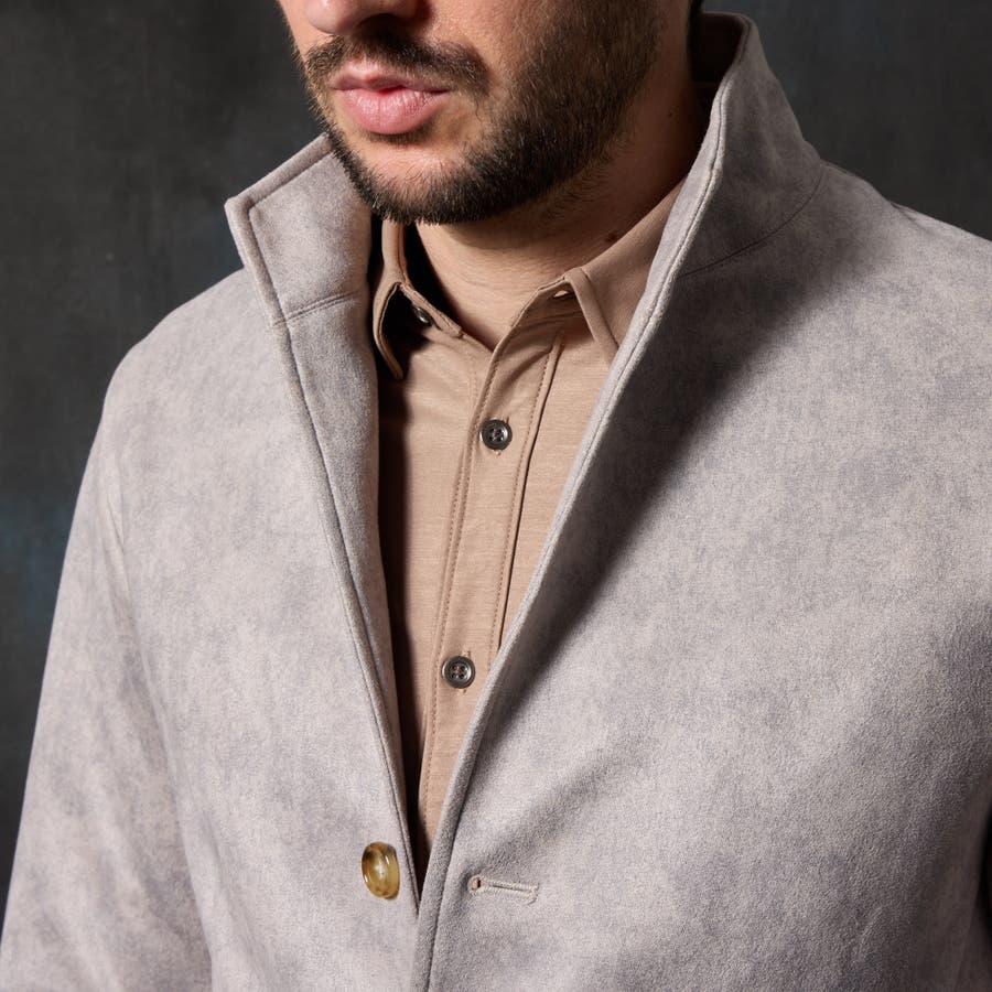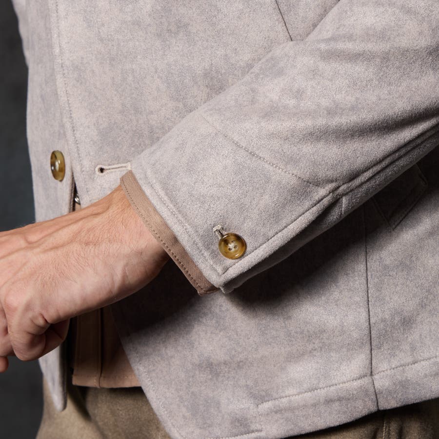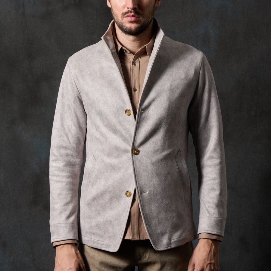 三つ釦タイプのスタンドジャケット。