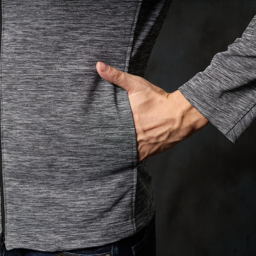 シンプルなデザインですが、左胸のファスナーポケットがアクセントになっています。