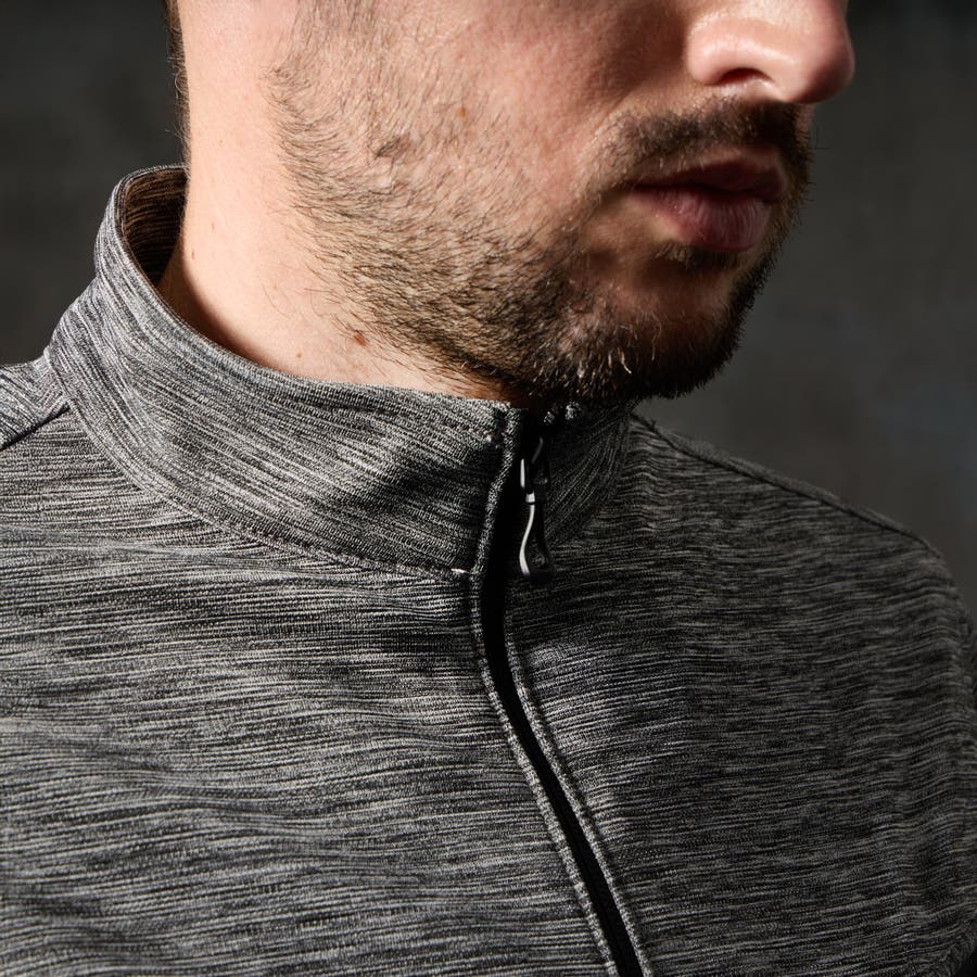 衿を低くすることで首周りをシャープにみせるスタンドジップブルゾンになります。