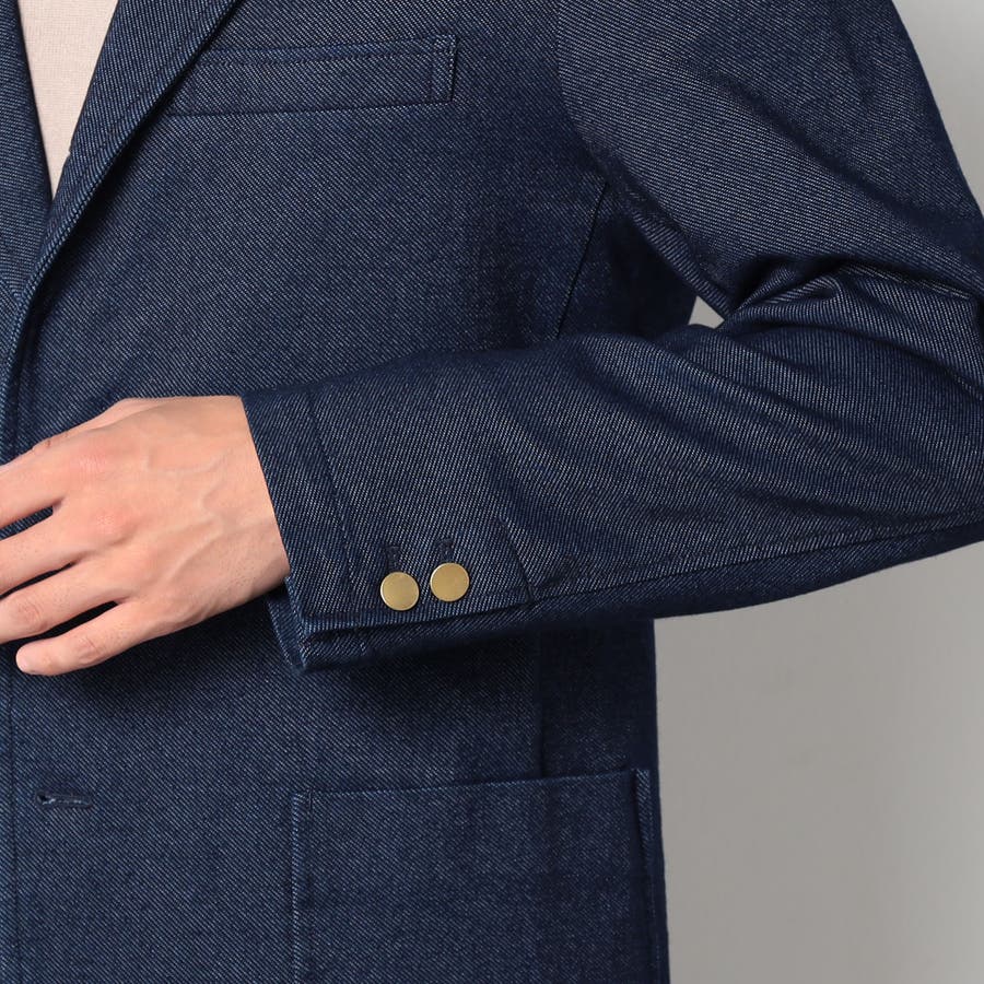 パッチポケットのカジュアル感と、ゴールド釦のアクセントが絶妙なバランスで融合しています。