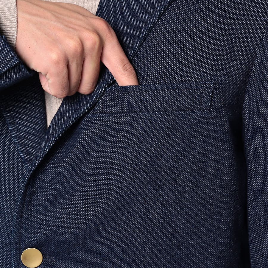 ストレッチ性のある上品なデニム素材で仕立てた、オンオフ問わず使える万能ジャケット。