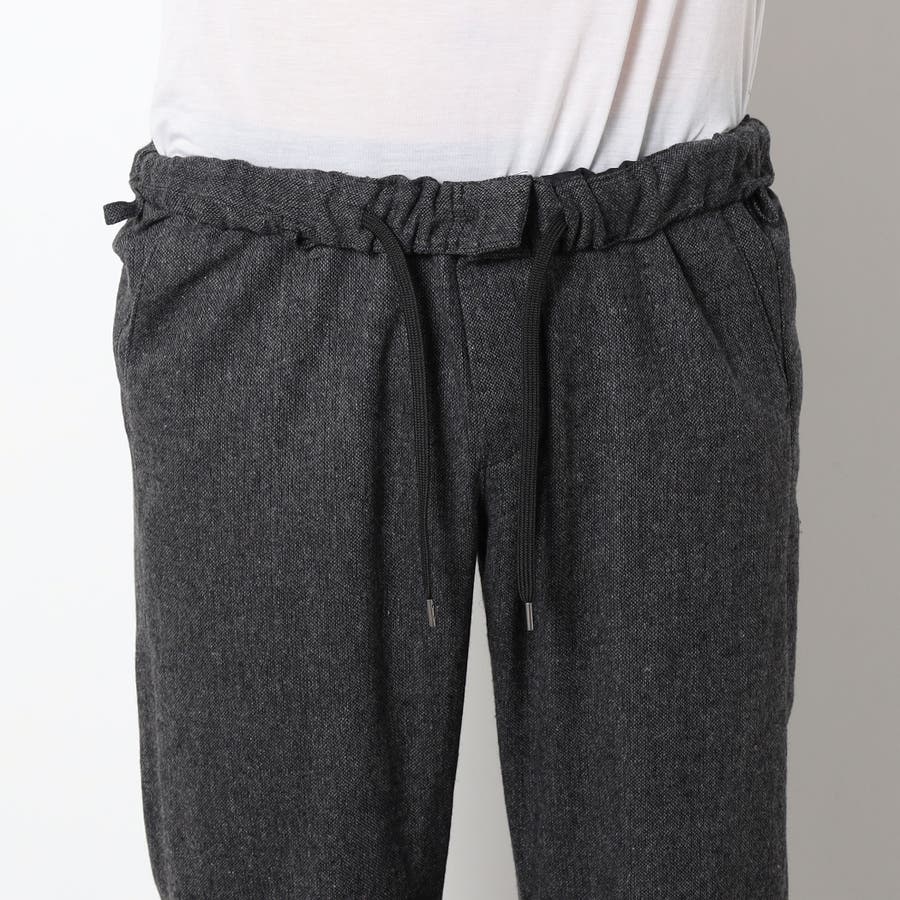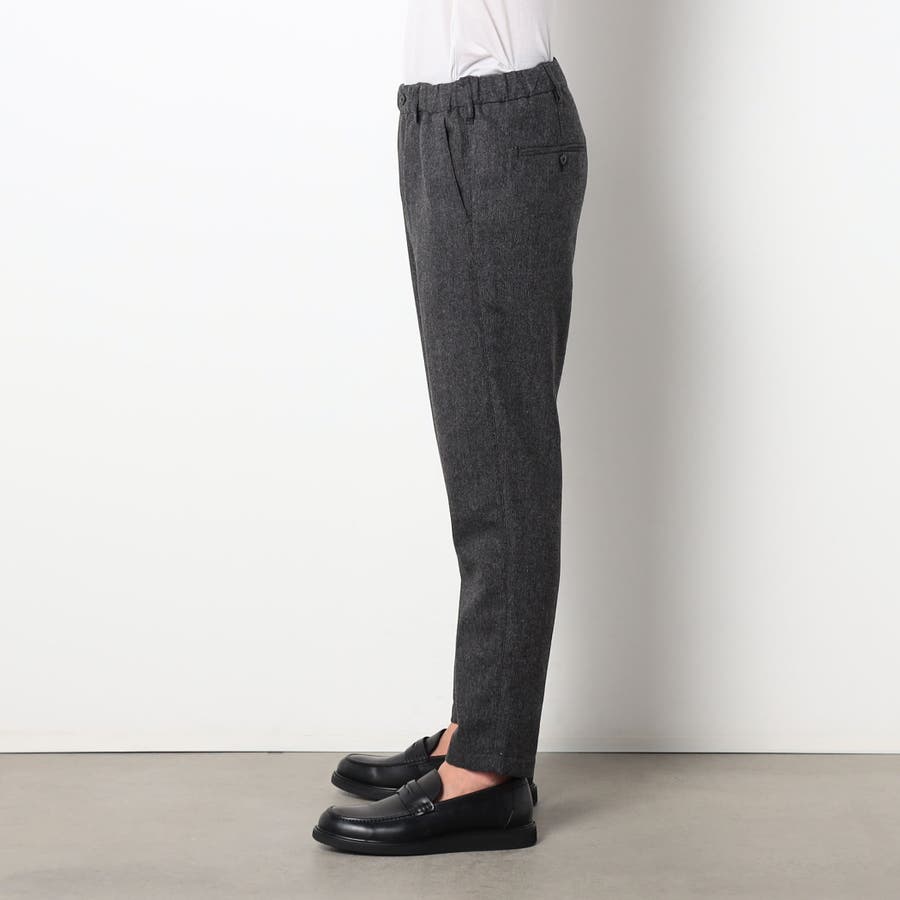 ホームスパン調の表情豊かな生地を使用し、シーズンムード漂う一本。