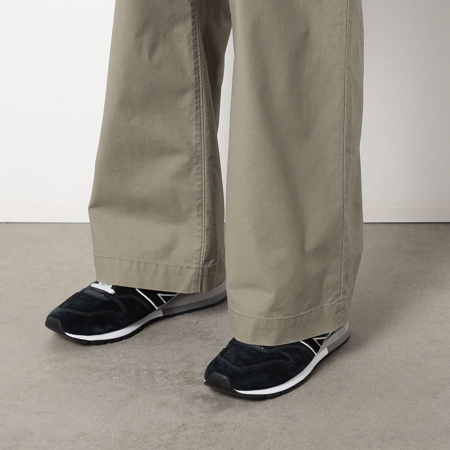 全体的にワイドな設計ながらも、裾に向かってわずかにテーパードを効かせることで、すっきりとした印象に。