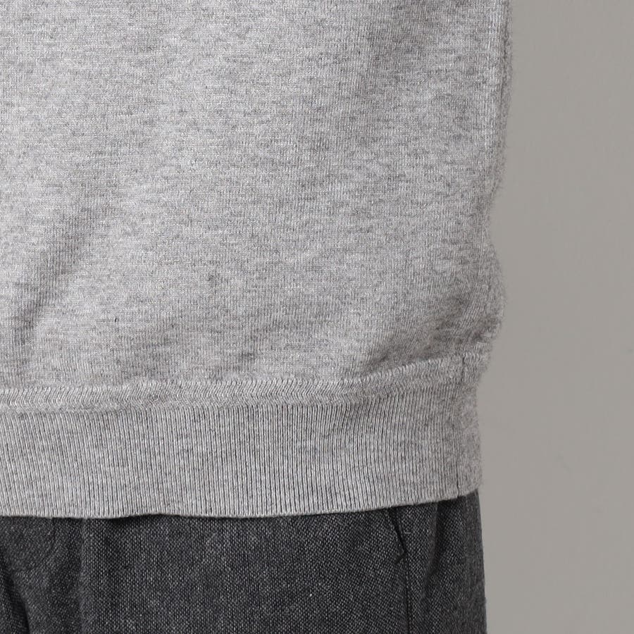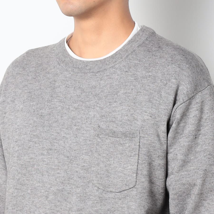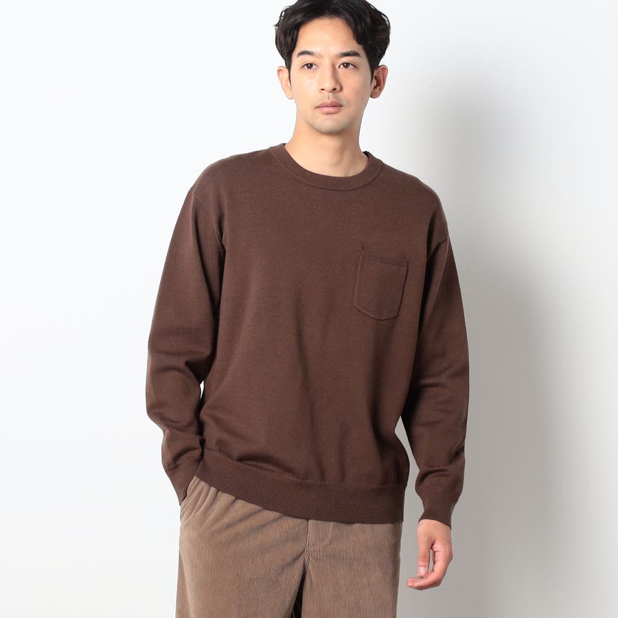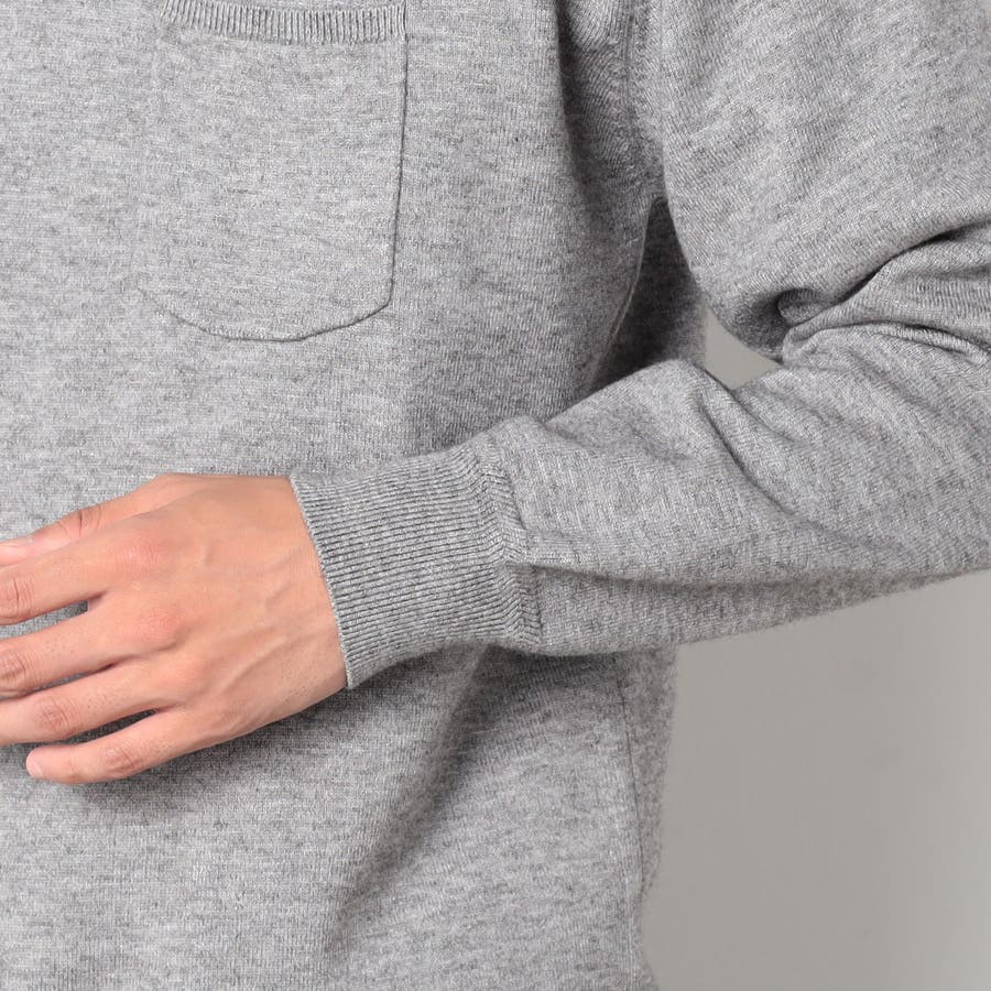糸本来の柔らかさを活かしつつ、編み目をしっかりと詰めることでスウェットのようなハリとコシを実現。ニットでは珍しい胸ポケットをアクセントに取り入れ、実用性とデザイン性をプラス。さらに袖口と裾リブにはヘリンボン柄の編地を施し、さりげないディテールにこだわっています。
