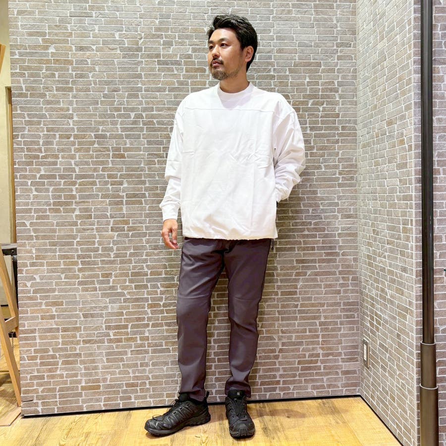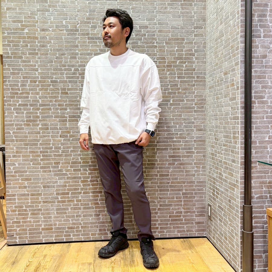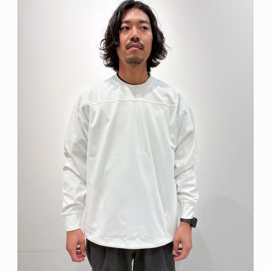 機能性と快適さを兼ね備えた、マルチシーンで活躍するロングスリーブカットソー。Tシャツ感覚で気軽に着用でき、セットアップスタイルも可能な万能アイテムです。