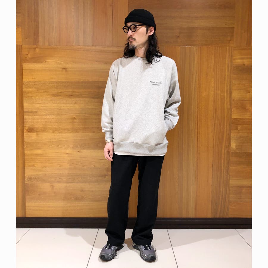 環境に配慮したリサイクル素材を使用し、同色のバックプリントが印象的なNANGA別注のスウェット。