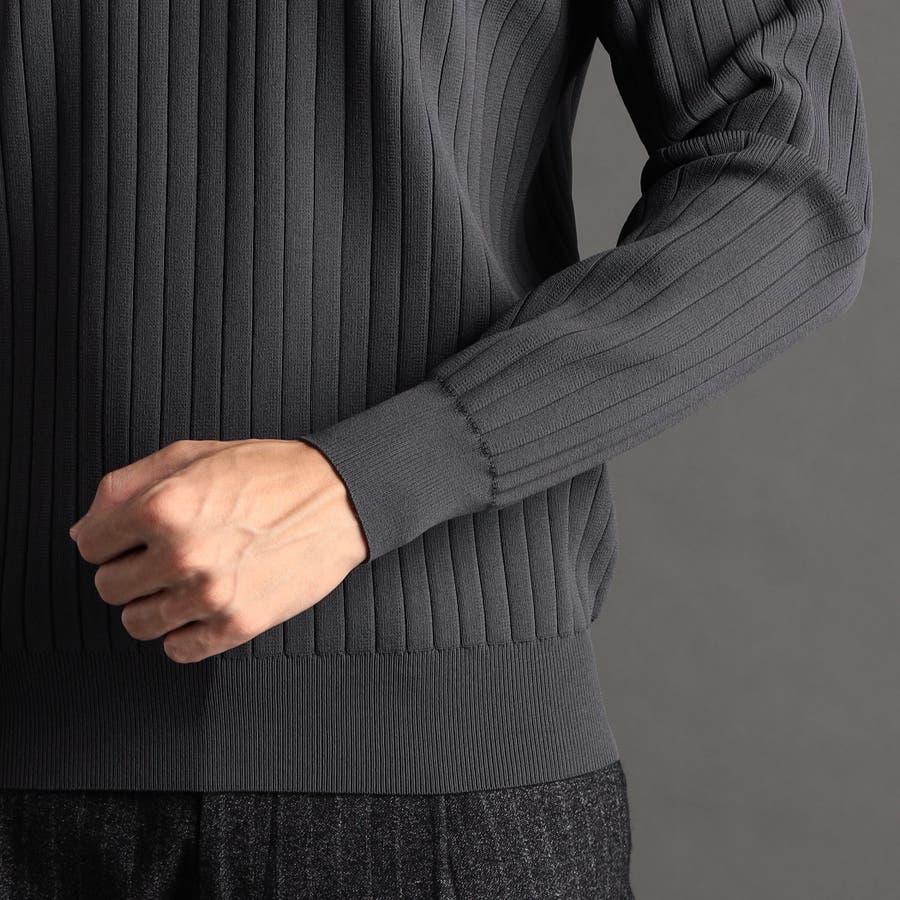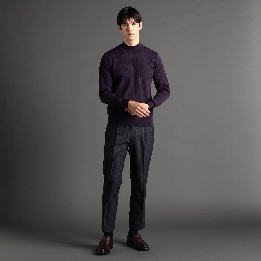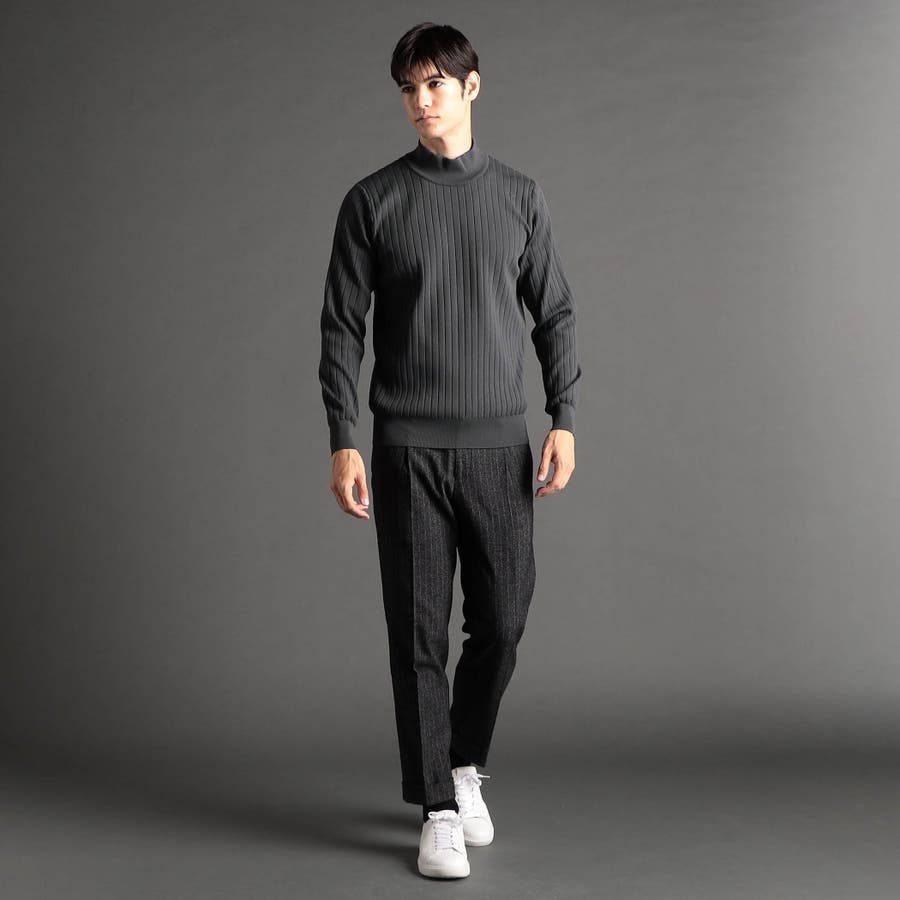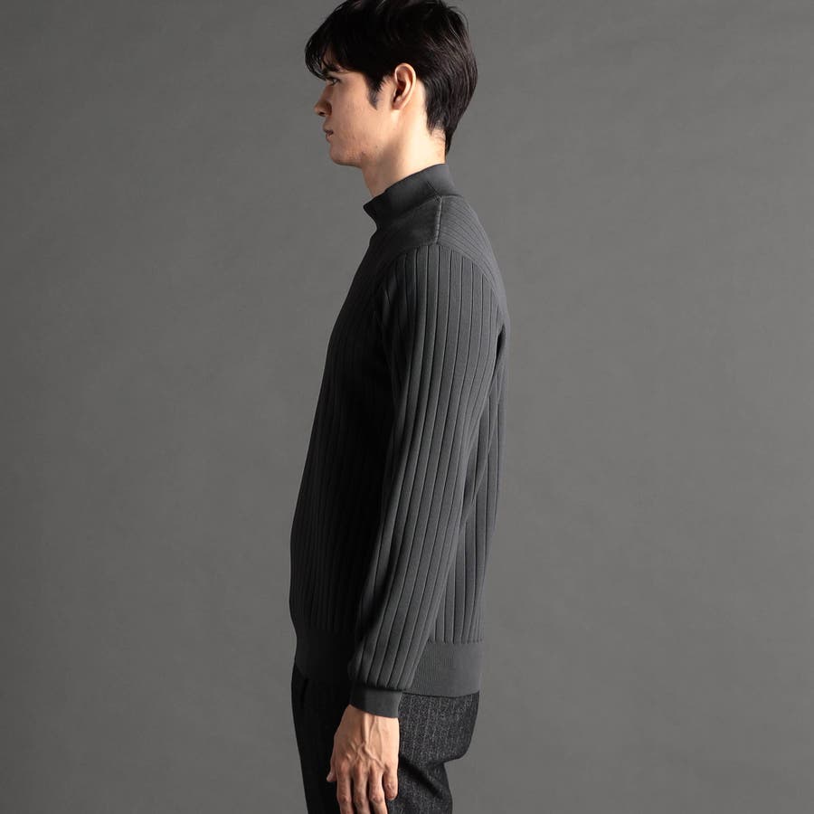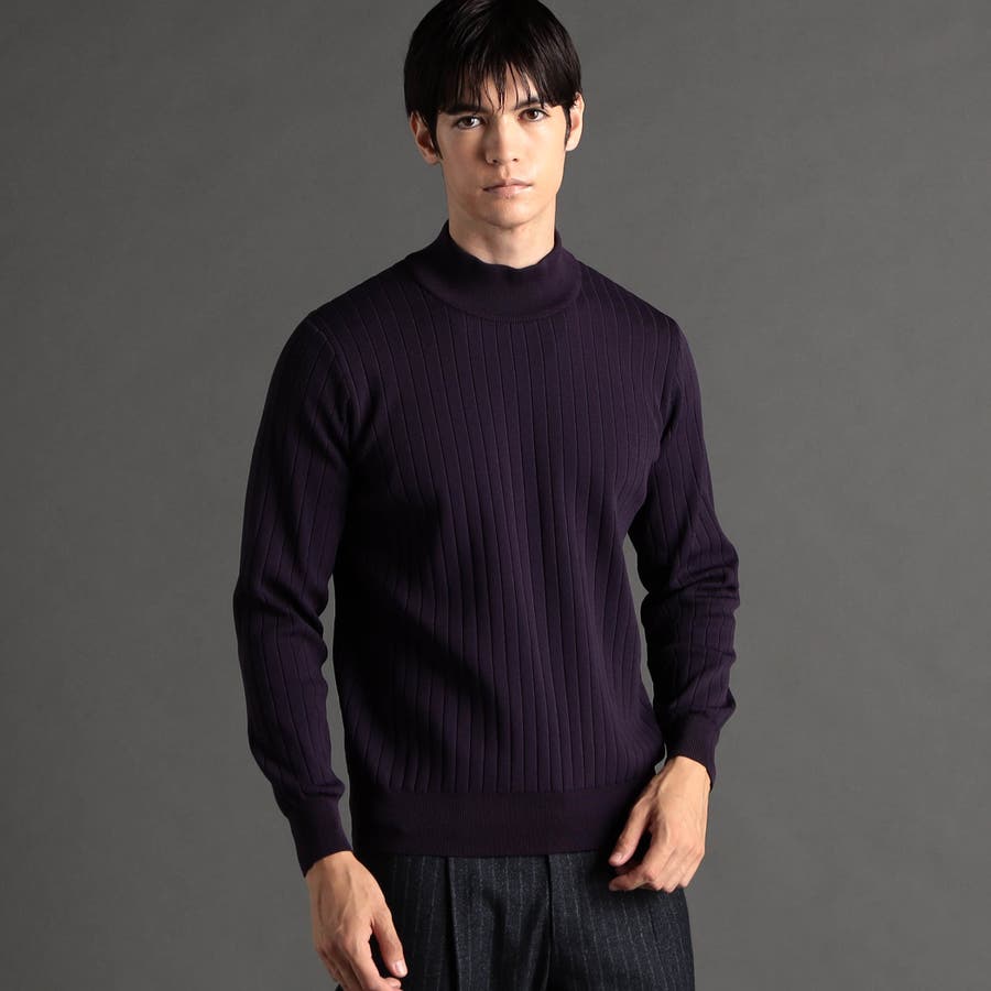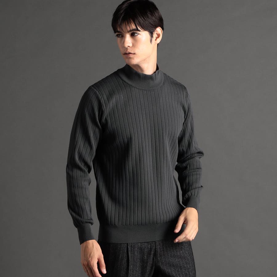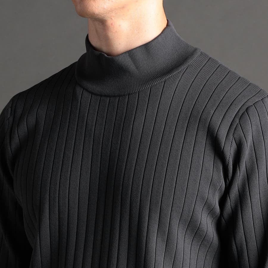 ワイドリブ モックネックニット