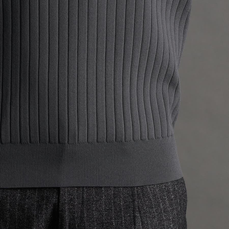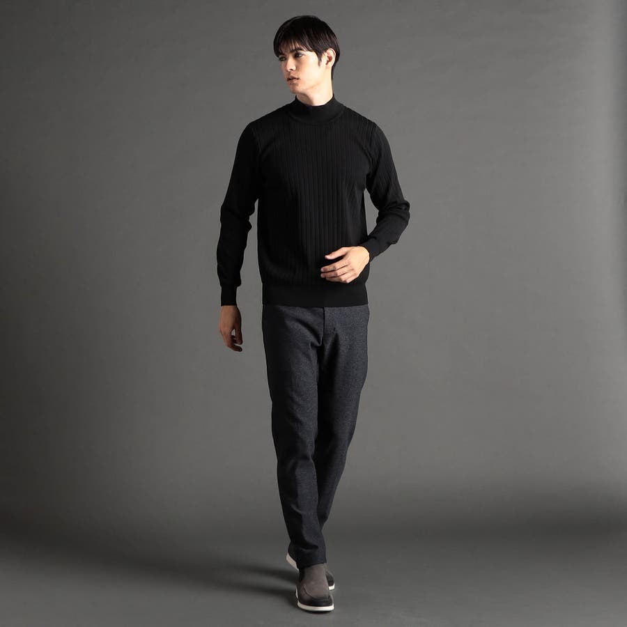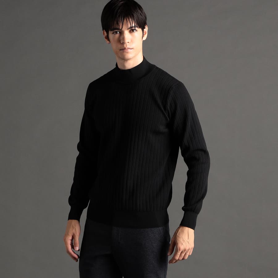 ワイドリブのモックネックニット。
