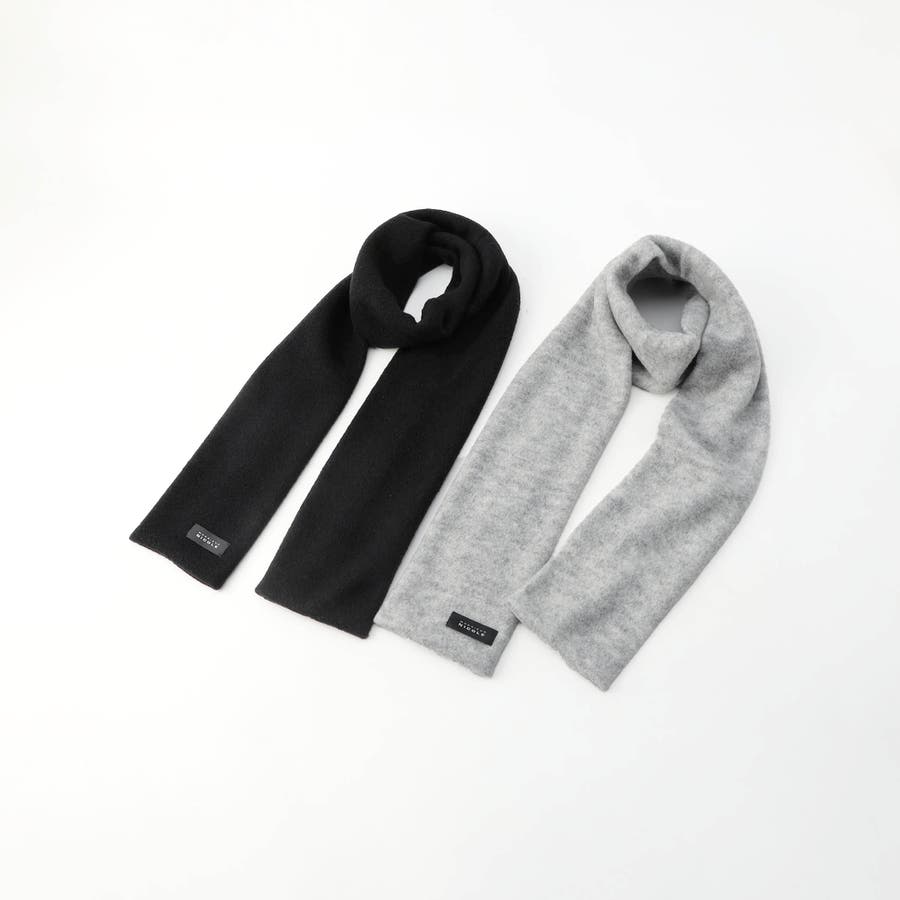 従来のマフラーとは一線を画した、二つ折りにして通すだけで上品なスタイリングを演出するクリエイティブなネックウォーマー。