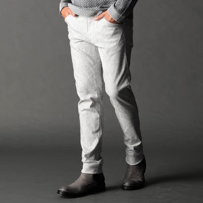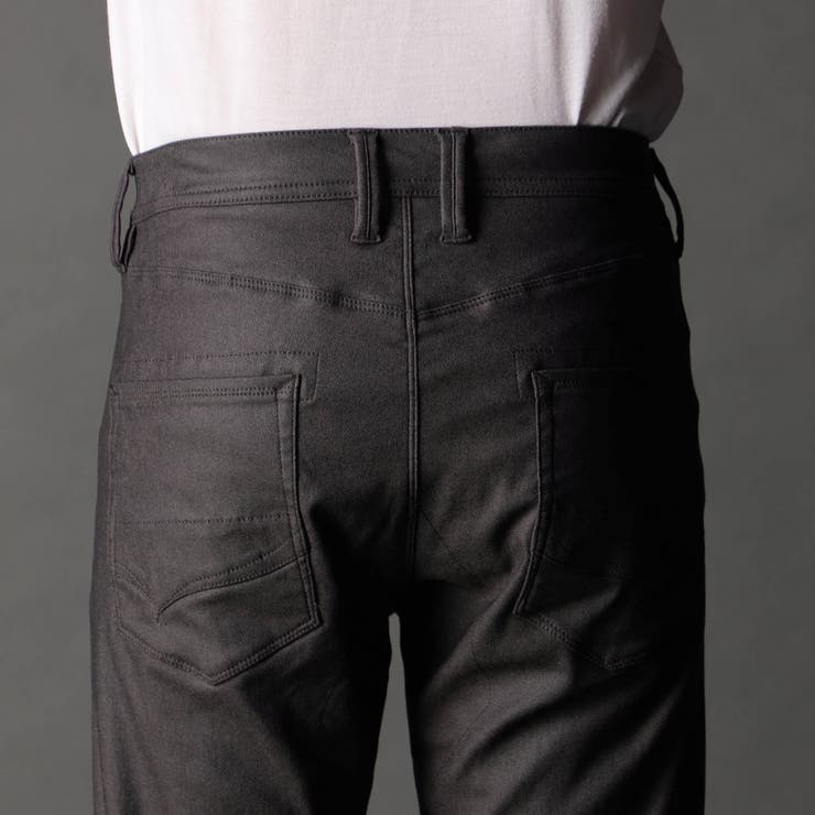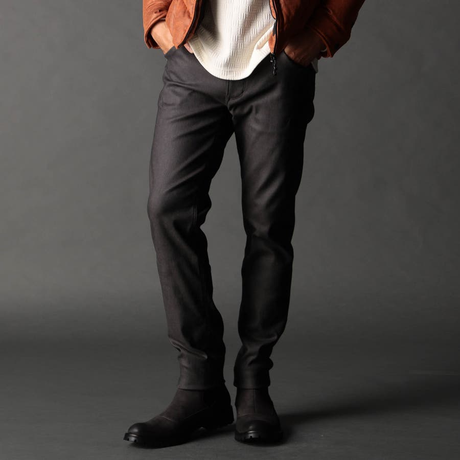 ウエストと腰周りは少しタイトめ調整、裾口に少しゆとりを出した程良いスリムストレートシルエットの細身の綺麗なラインです。股下はフルレングスなので裾上げして調整してください。