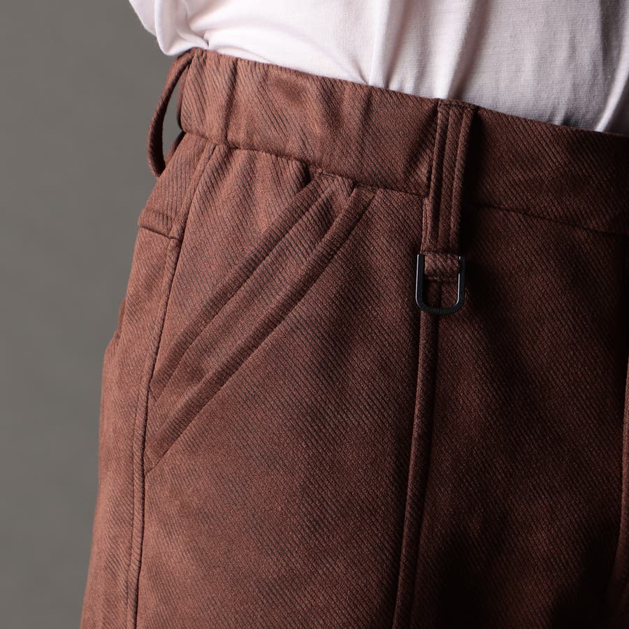 裏側の別布にはストレッチ裏地を使用して表地に追従するストレスフリーな穿き心地です。