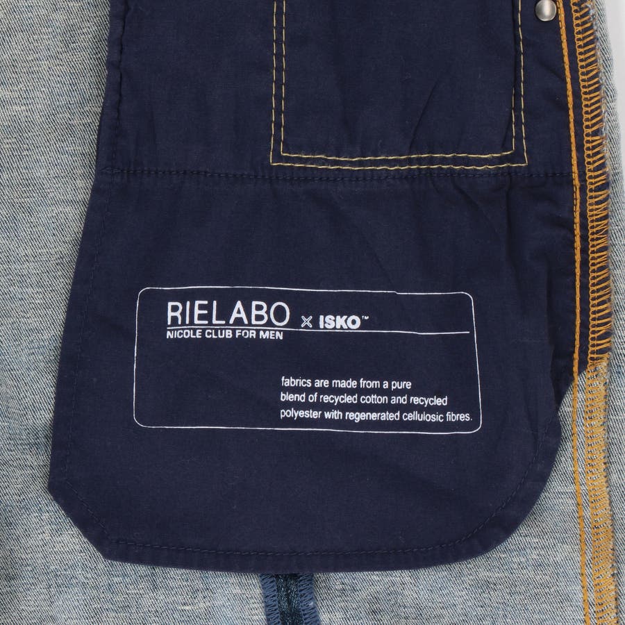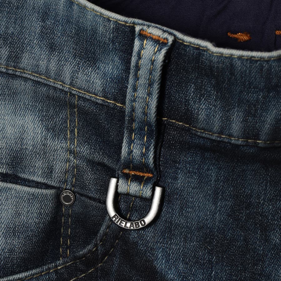 バックポケットのR刺繍と3本ループを特徴としたリエラボの5ポケットデザインパンツ。縦のデザイン切り替えを入れる事で加工感が目立つ様にしています。素材にあわせてウエストベルトも少し伸びる様に縫製、ストレッチ裏地を別布に使用していますので穿き着心地も抜群です。ISKOの下札を付け、右ポケット袋布にISOKコラボのプリントを施しています。