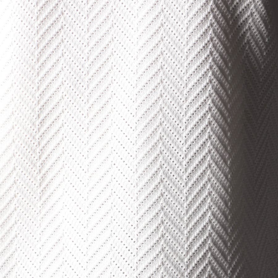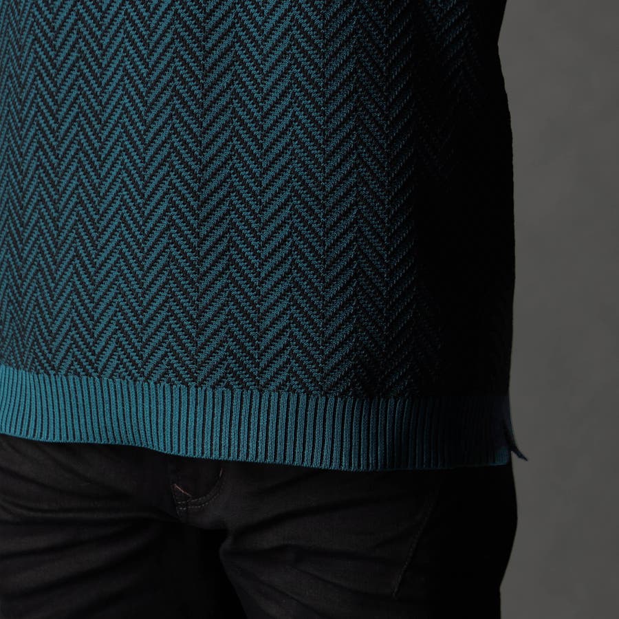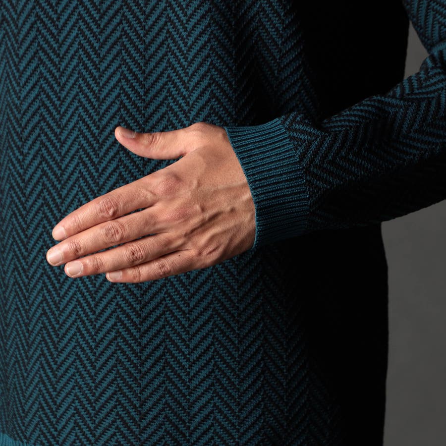 高収縮ポリエステル糸を使用し、14ゲージという細番手で高密度に編みたてたヘリンボン柄ニット。ポリエステル100%になりますので、軽量で家庭洗濯でき、速乾性に優れてシワにもなりづらいのが特長。