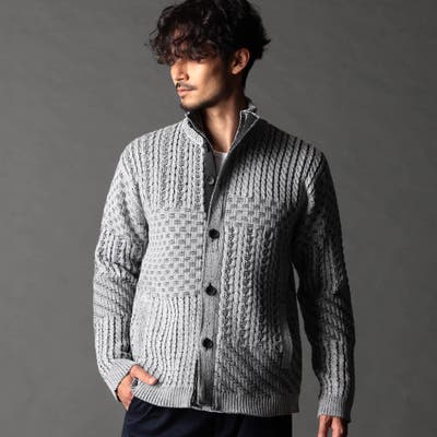 【49ブラック】編地切替 スタンドニットブルゾン