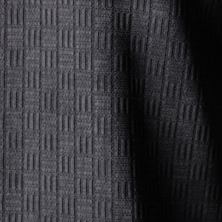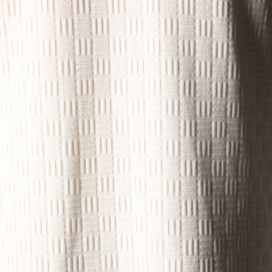 3本のラインを縦横交互に組み合わせ、編み方で凹凸を出してブロックチェック柄を表現したベロア素材。ベロアならではの程よい光沢感がありながら綿素材特有のナチュラルな風合いも併せ持った上品な印象の生地です。カットソーですので張りのあるストレッチ性も備えています。