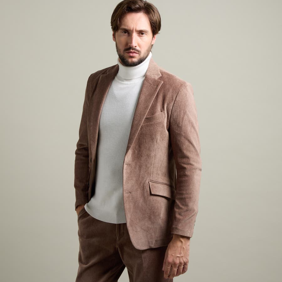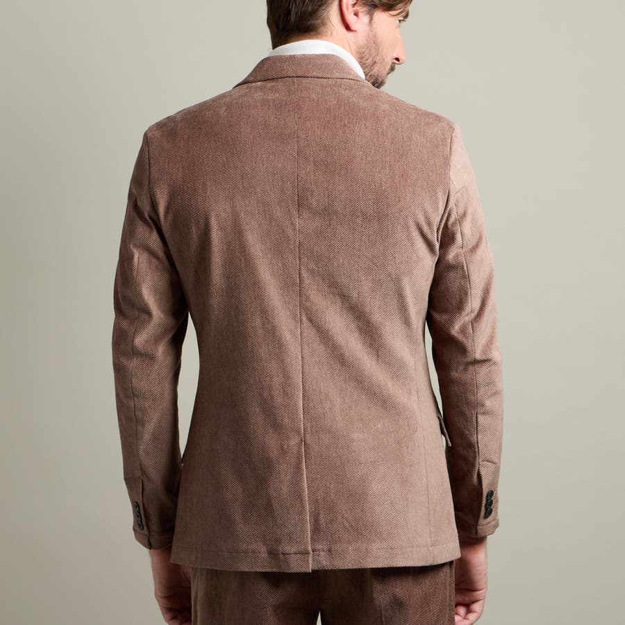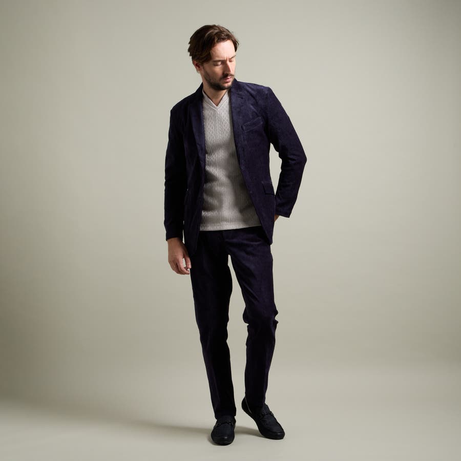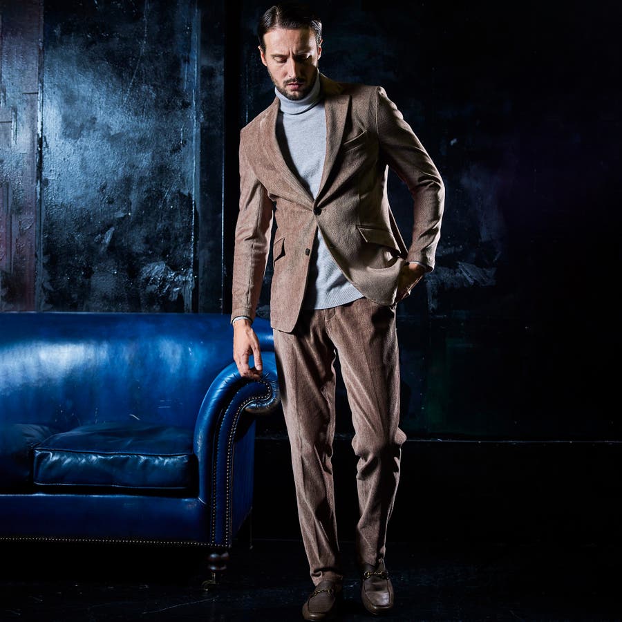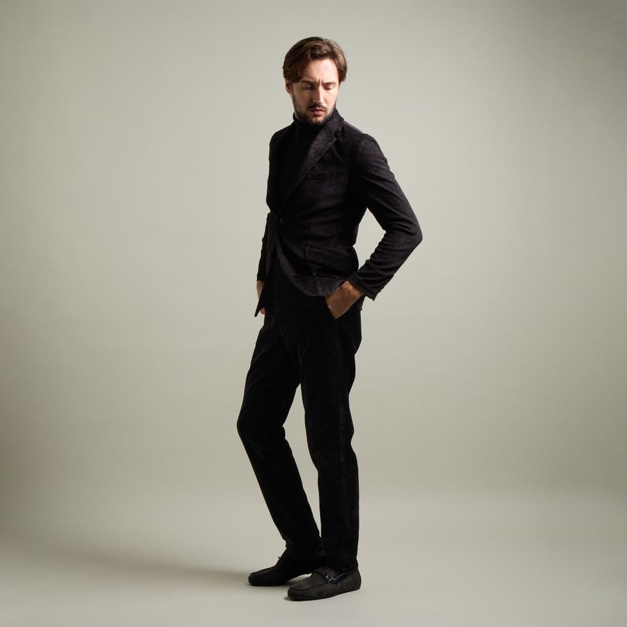縦畝(ウネ)のコーデュロイとは違う、斜めの組織感が特長のカルゼ柄が上品さをかもし出します。