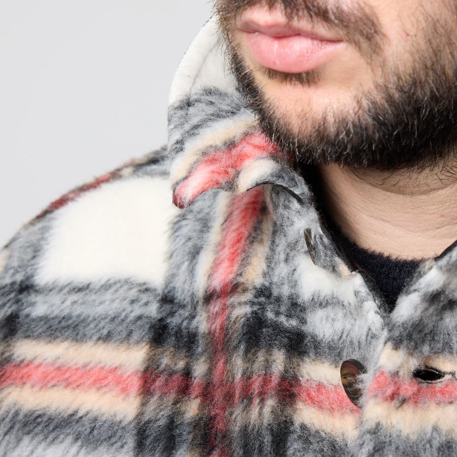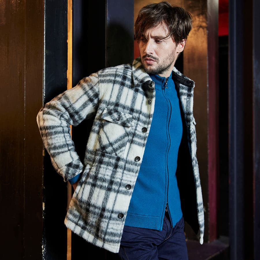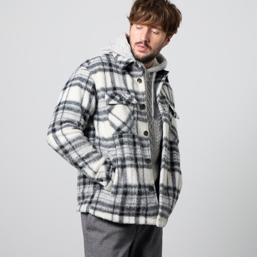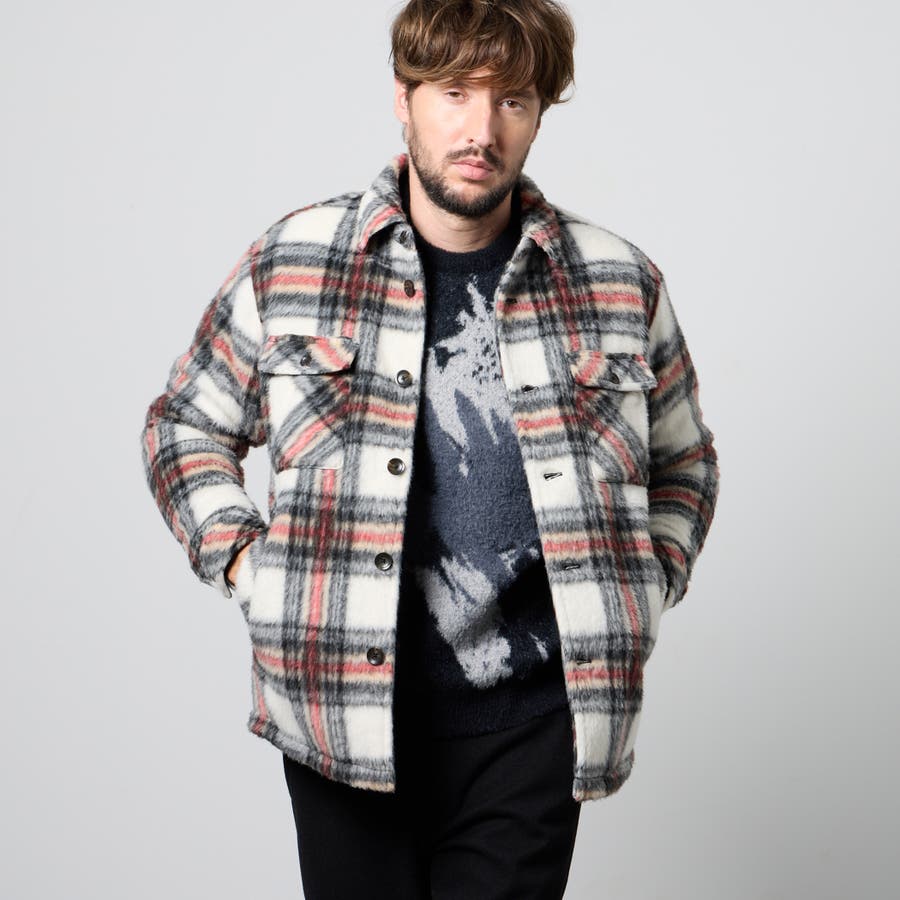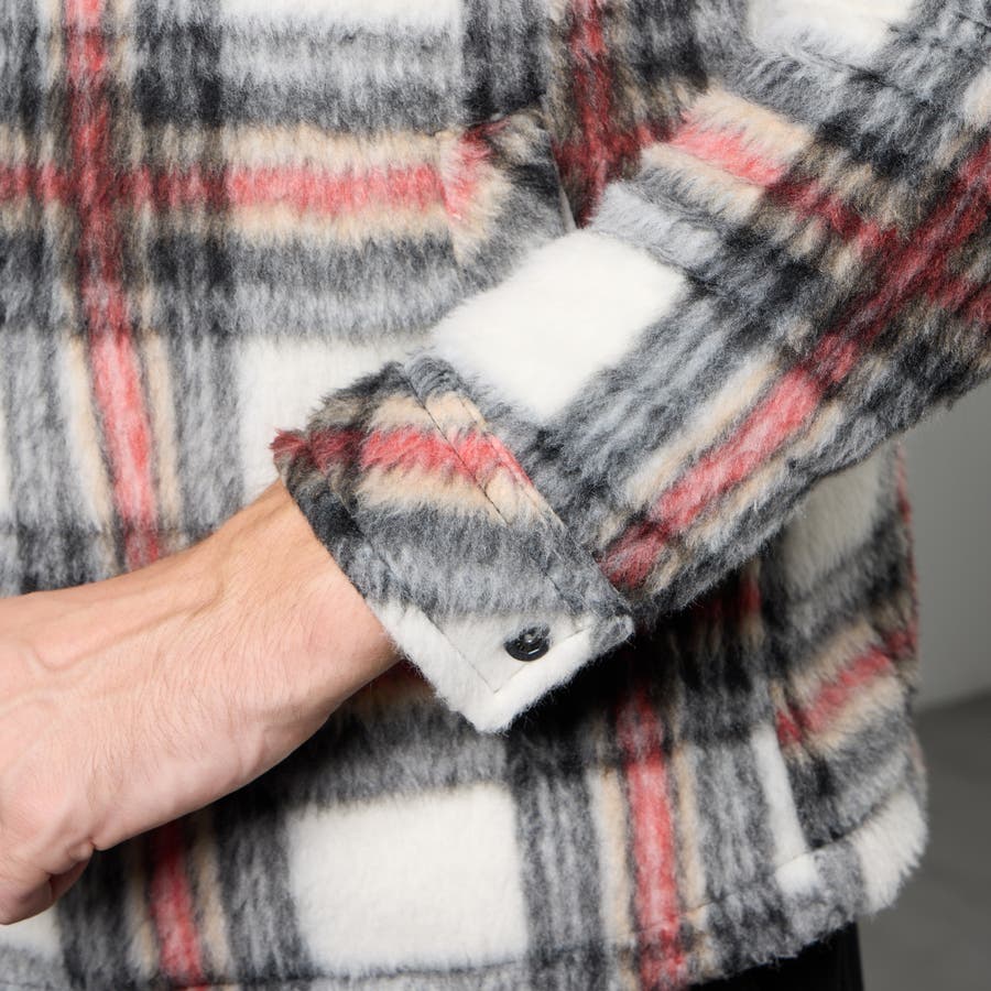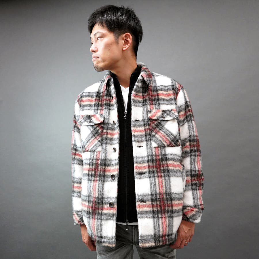ポリエステルのジャージ素材にシャギー起毛をかけた先染めのシャギーチェックニット。