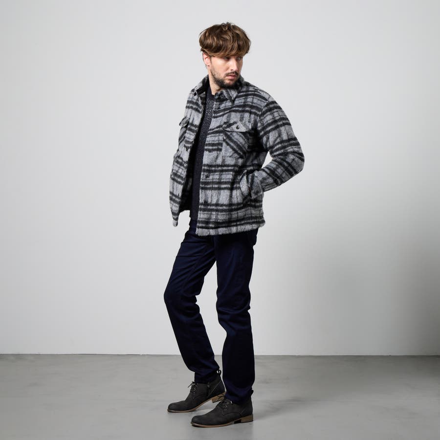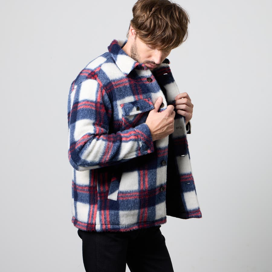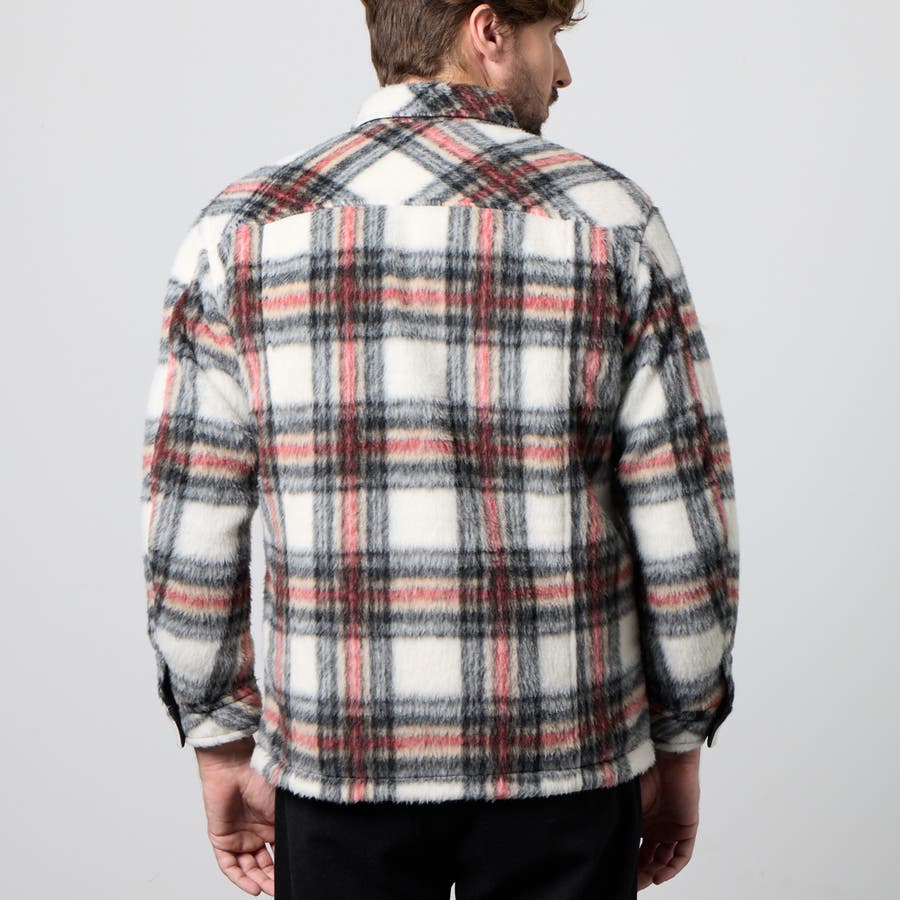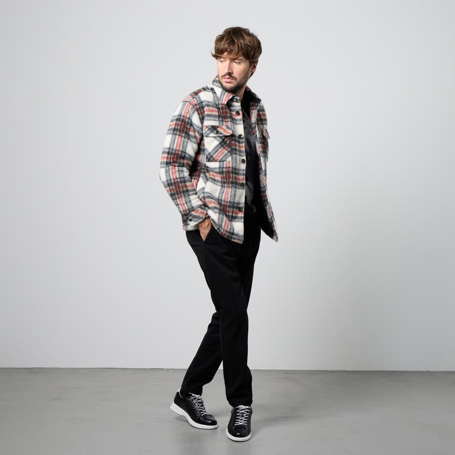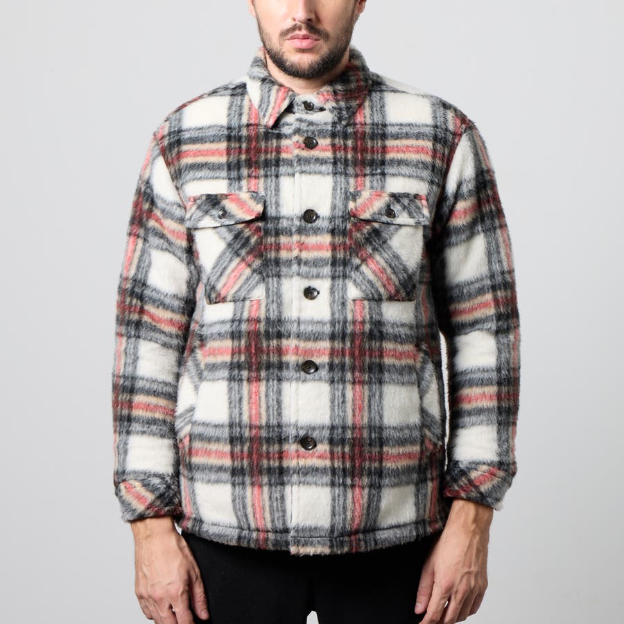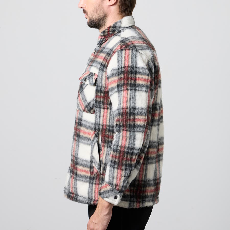 ポリエステルのジャージ素材にシャギー起毛をかけた先染めのシャギーチェックニット。