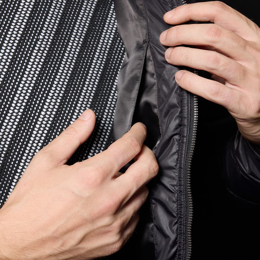 見た目よりも軽い着心地と空気を多く含む事による保温性の高さが特長です。