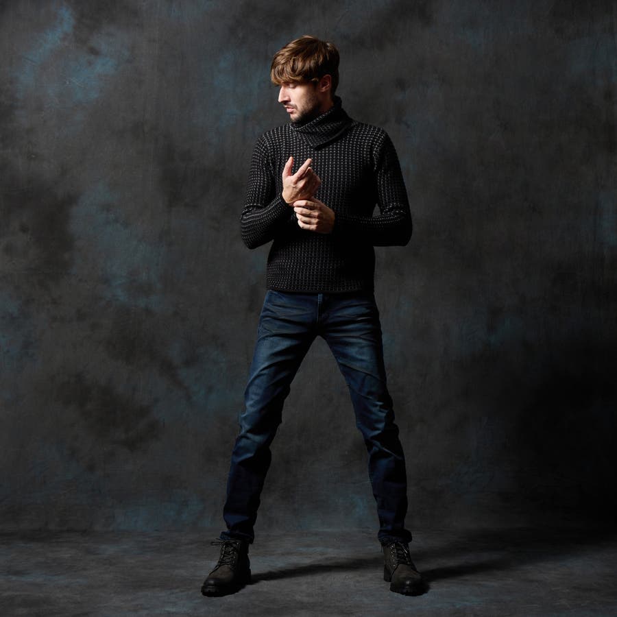 サイズ設定は細身ですが、ストレッチがあるのでストレスフリーに着用頂けます。