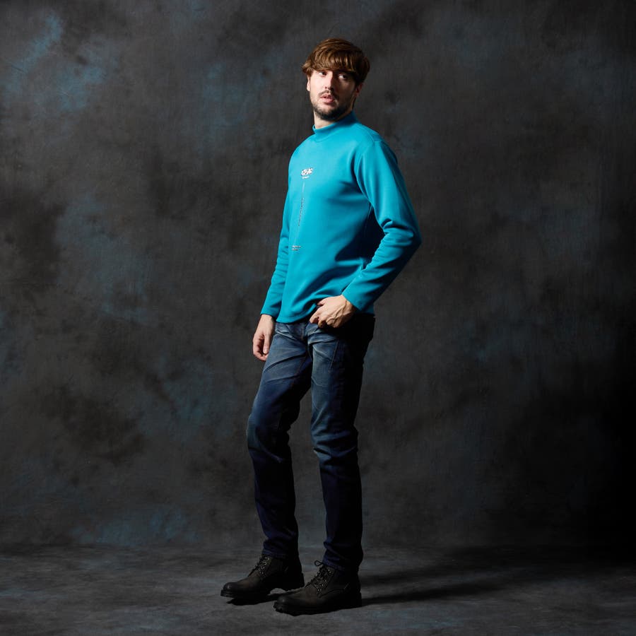 生地には10ozのストレッチデニムに裏起毛をかけた素材を使用。