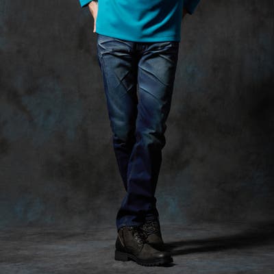 通常の削り加工に加えて前股のひげは立体的なひげ、顔料を吹き付ける事で他には無い陰影感のデニムに仕上げています。