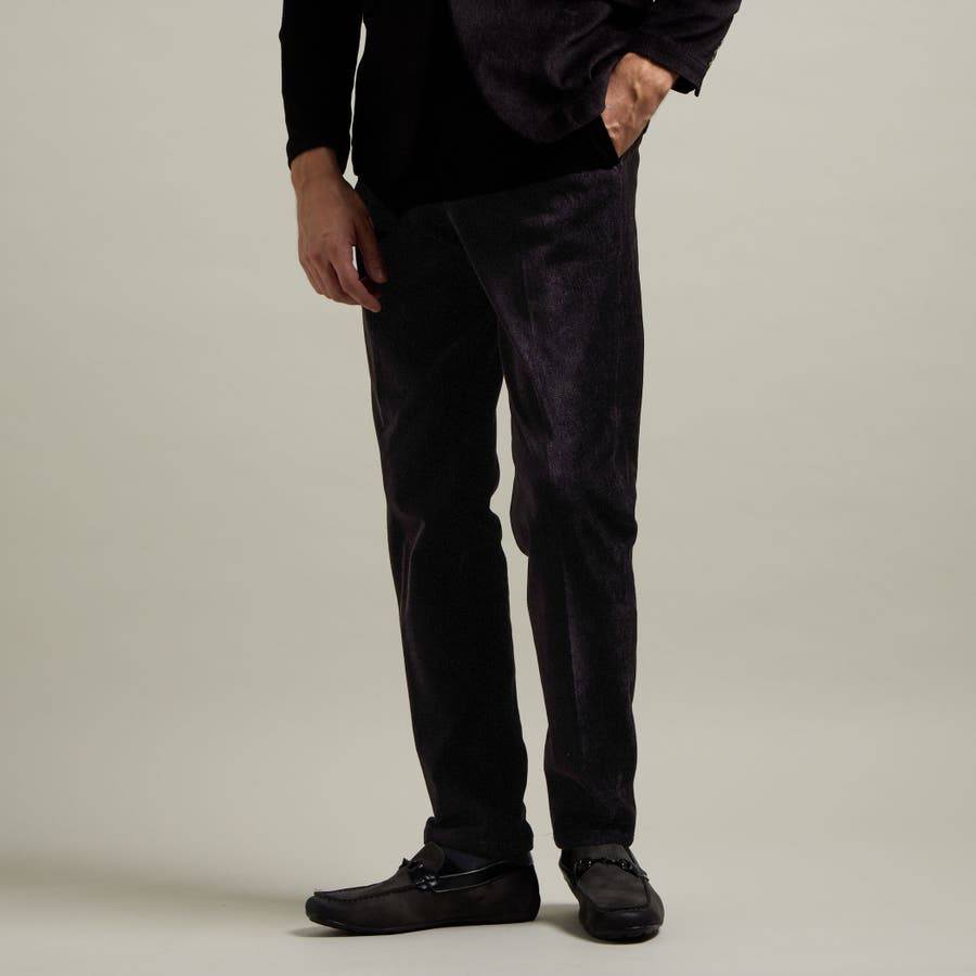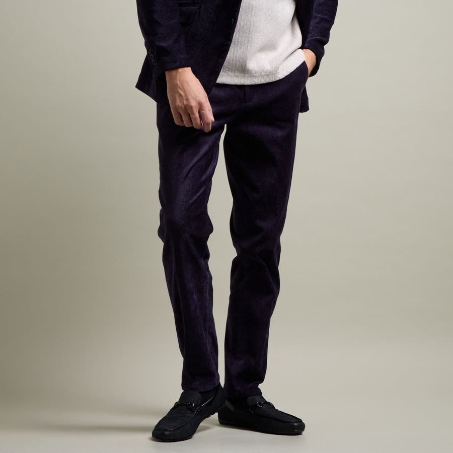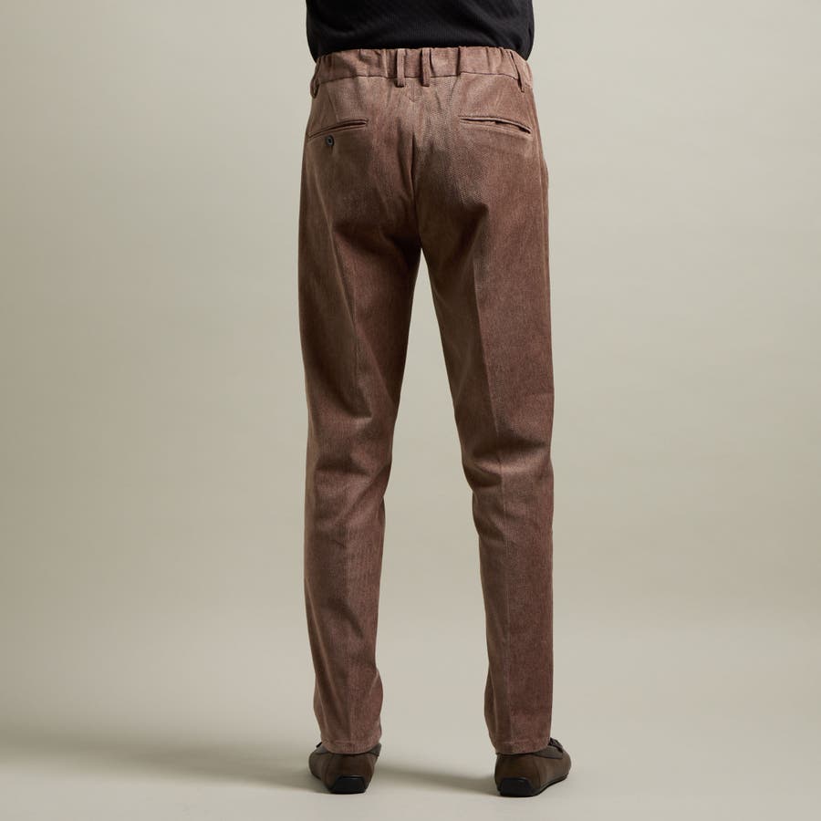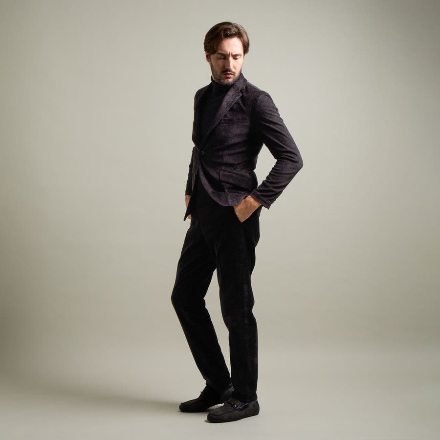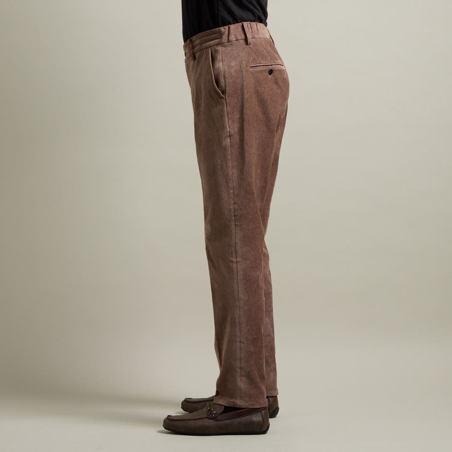縦畝(ウネ)のコーデュロイとは違う、斜めの組織感が特長のカルゼ柄が上品さをかもし出します。