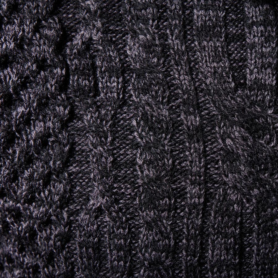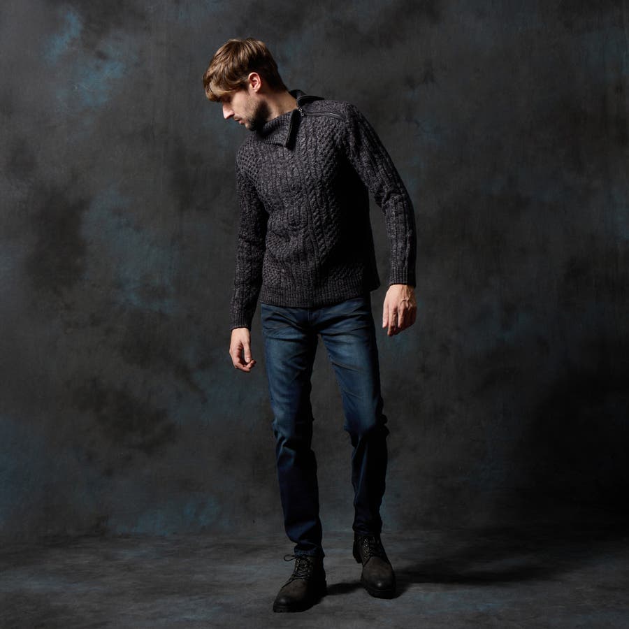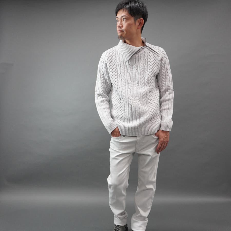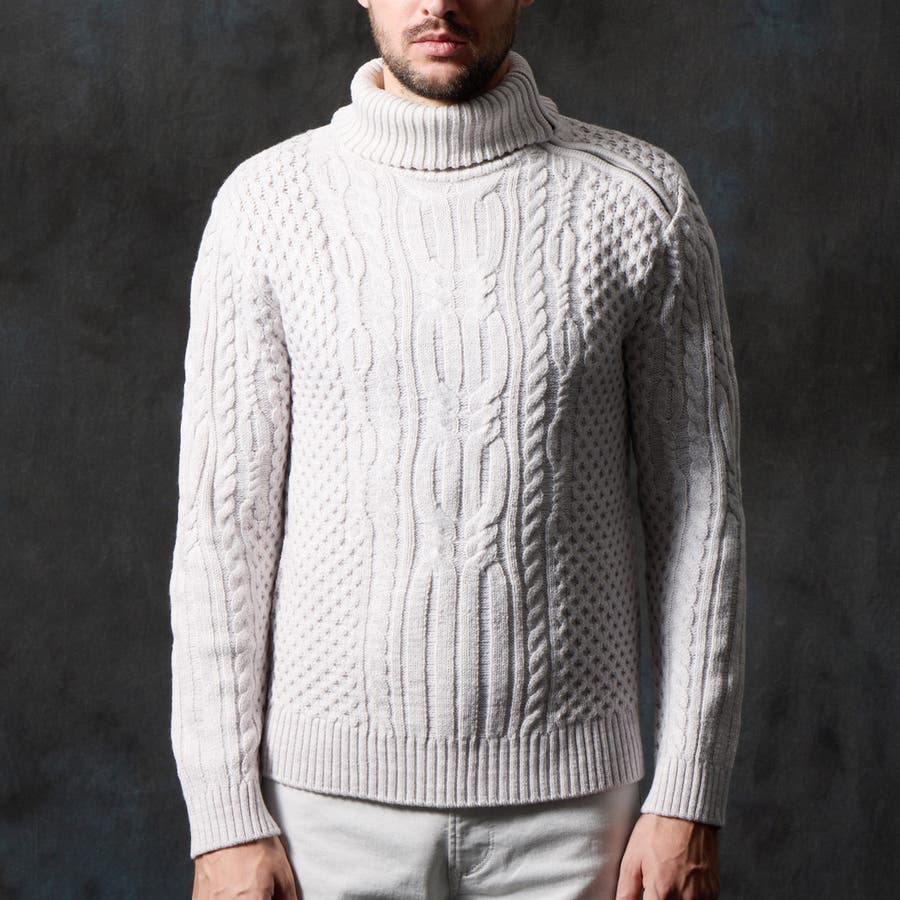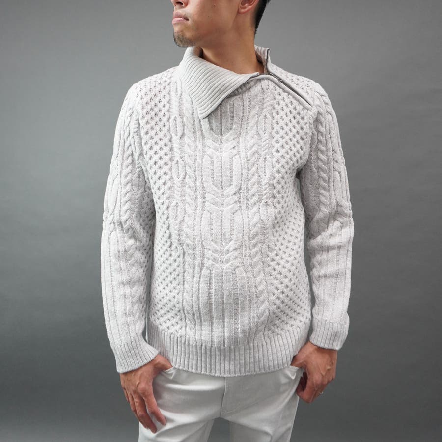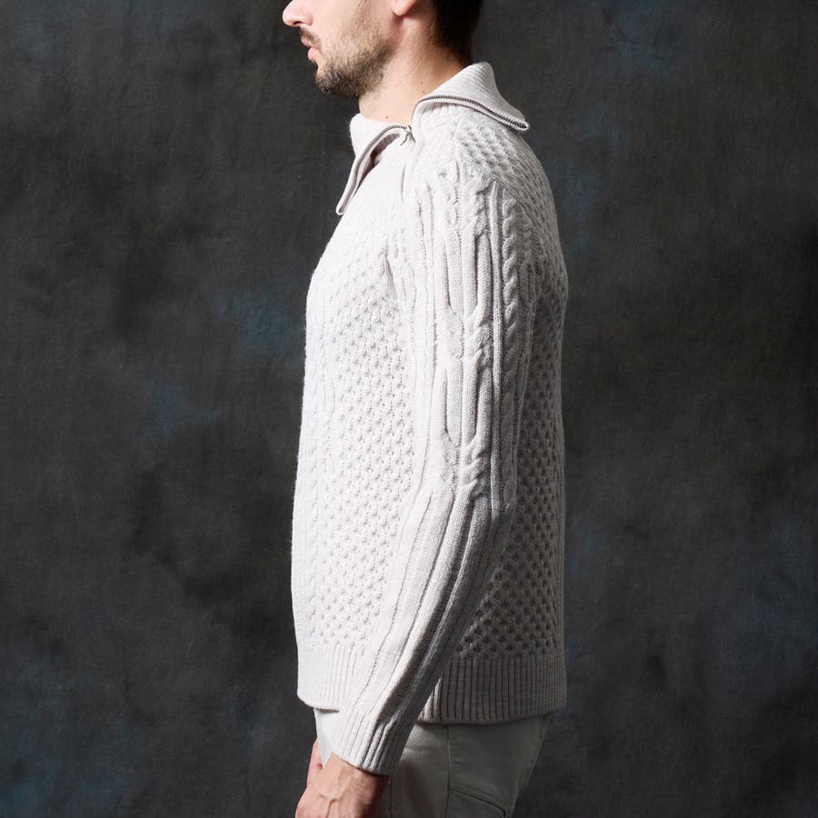 ケーブル編み衿ファスナータートルネックニット