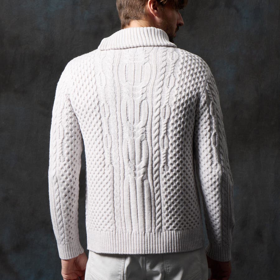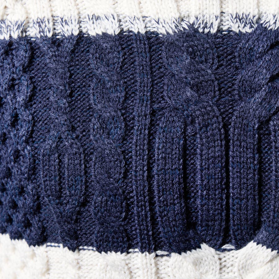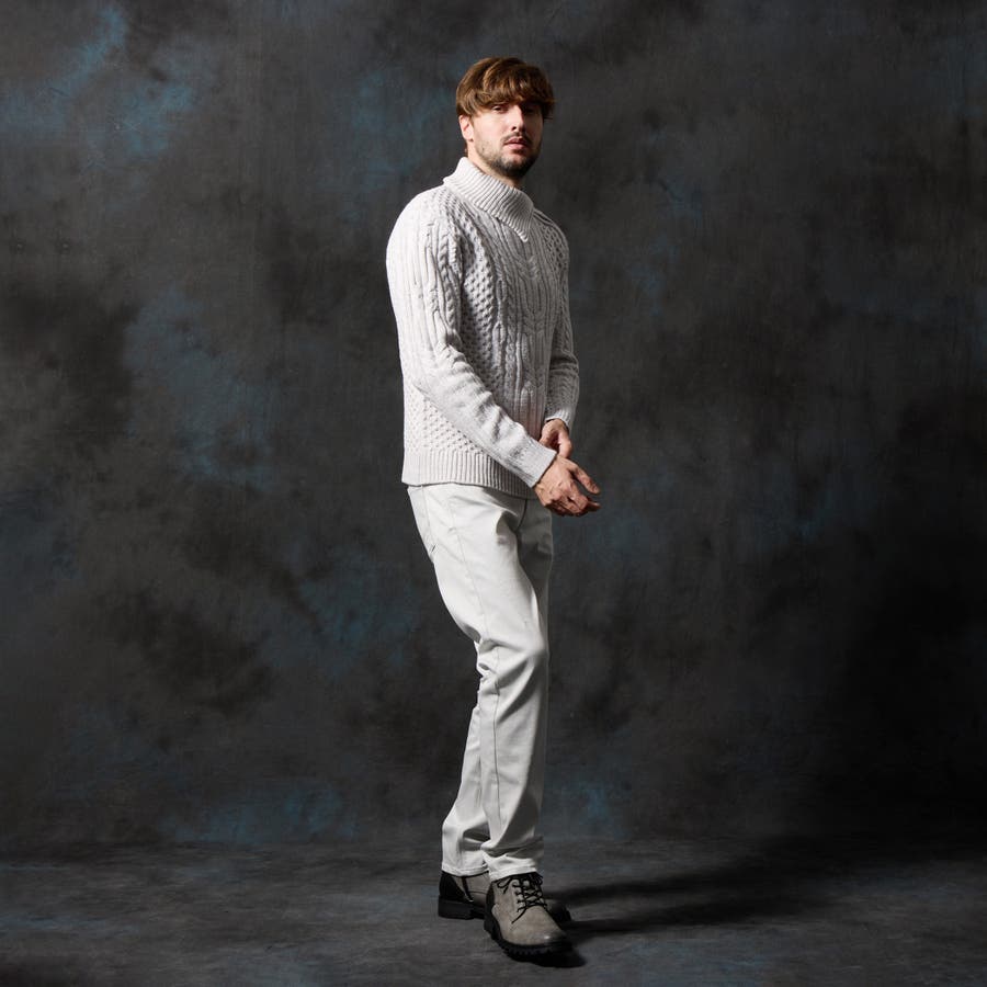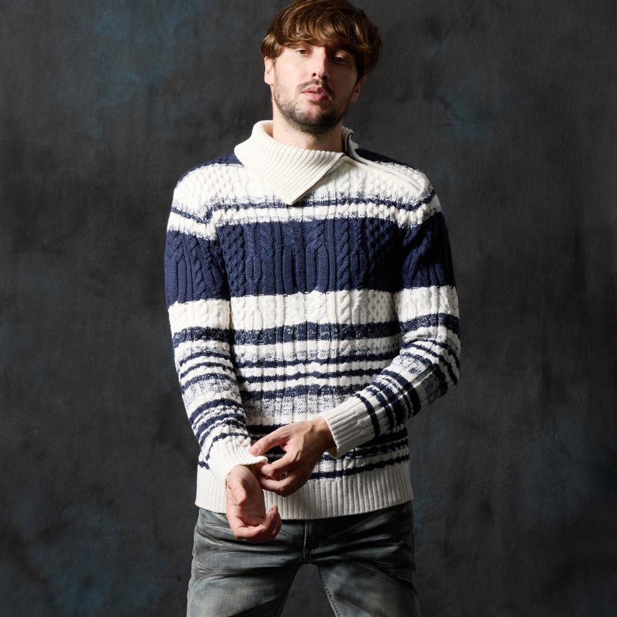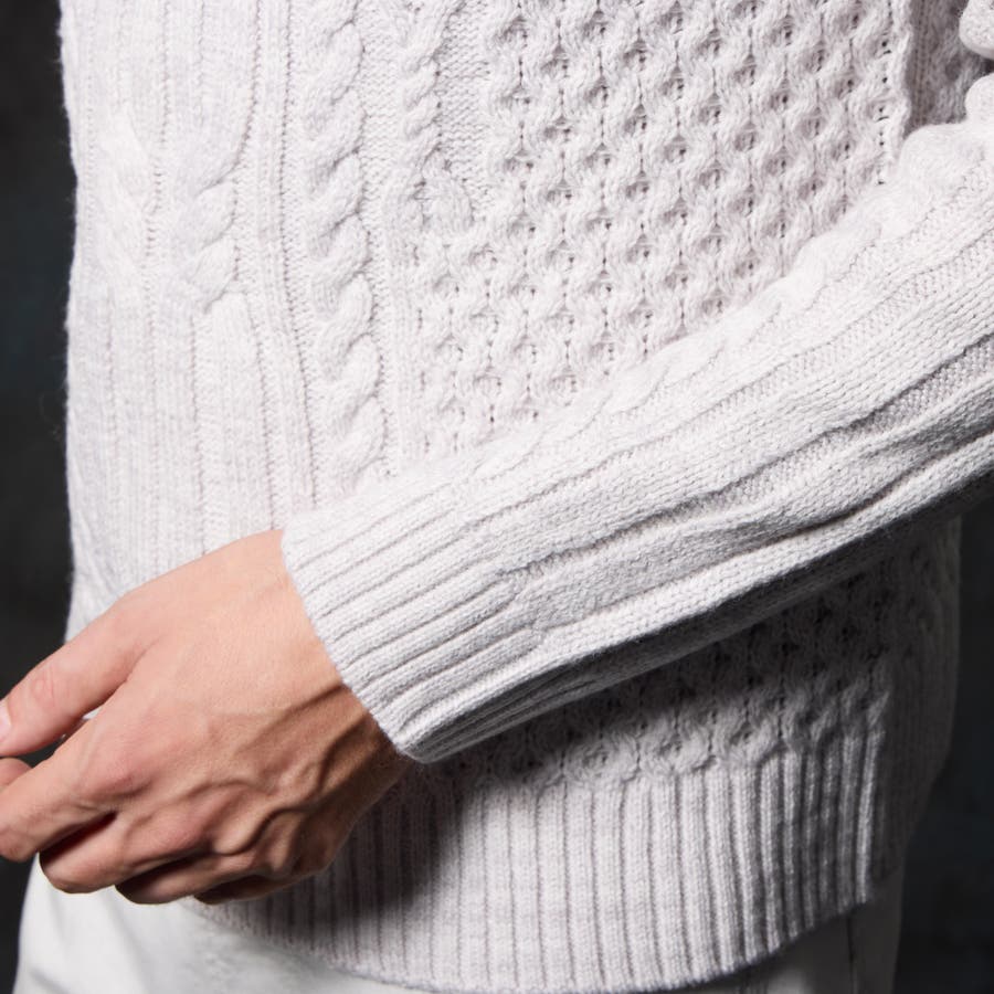 ケーブル編み衿ファスナータートルネックニット