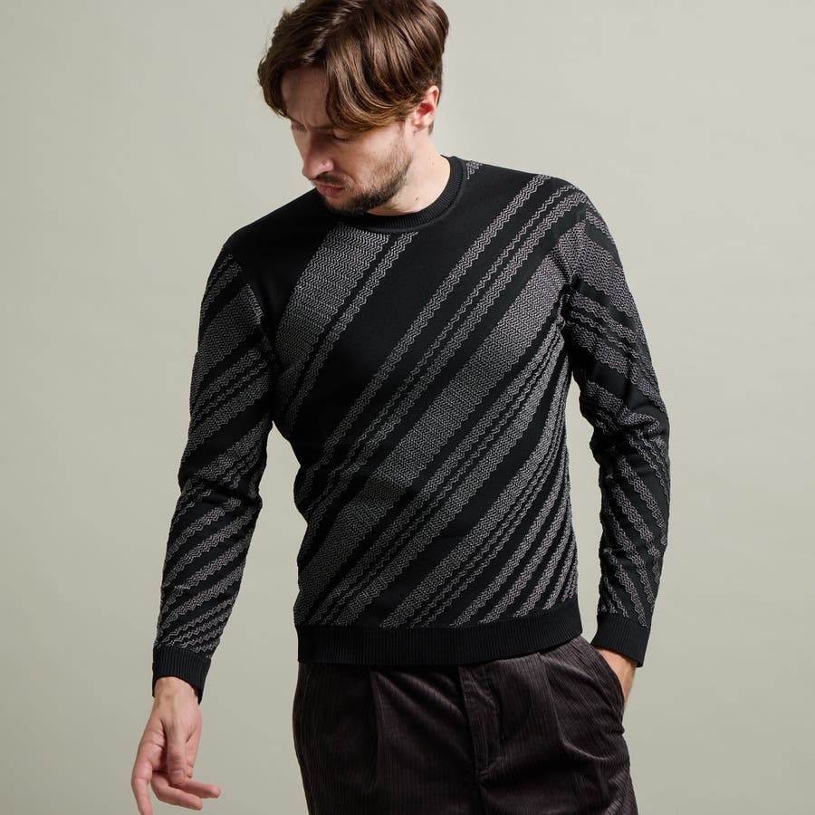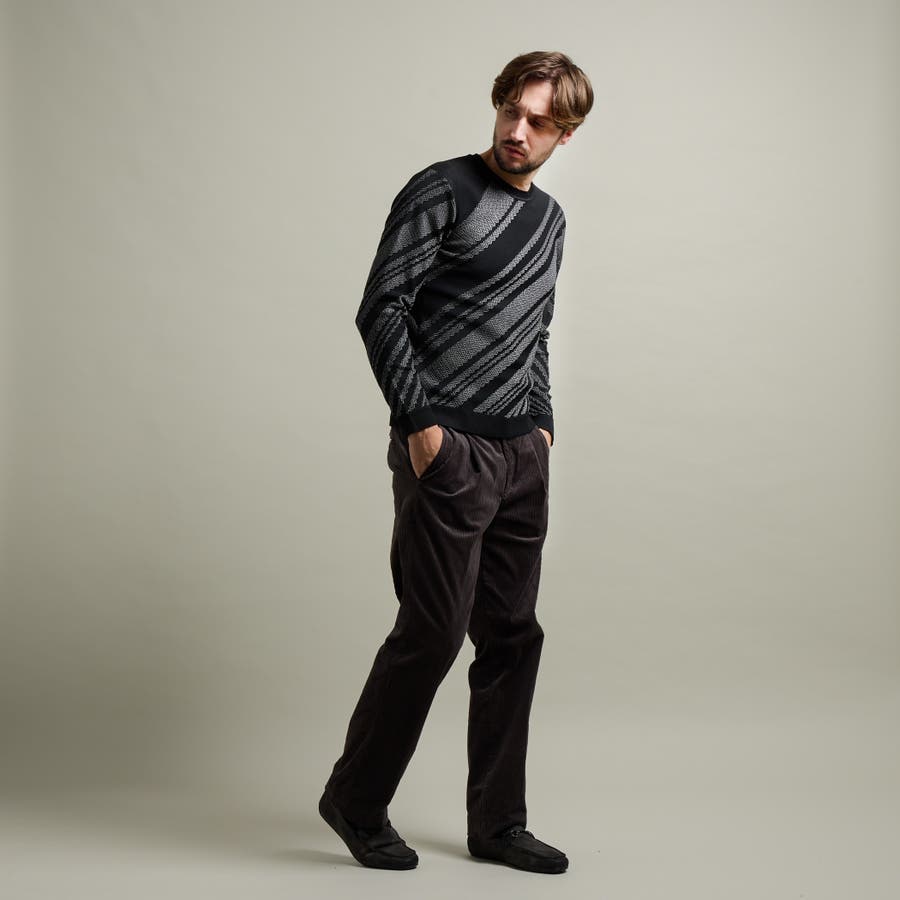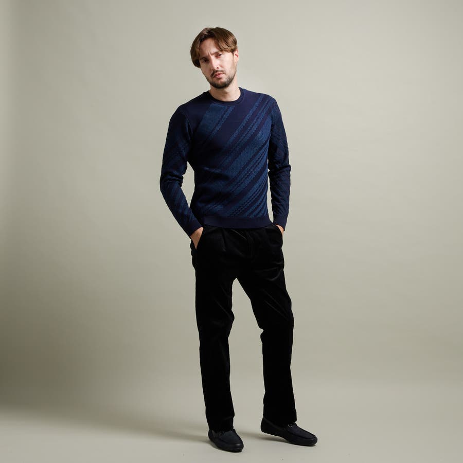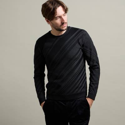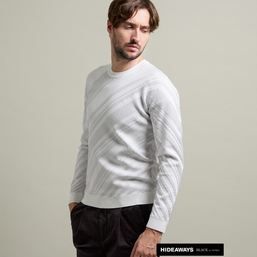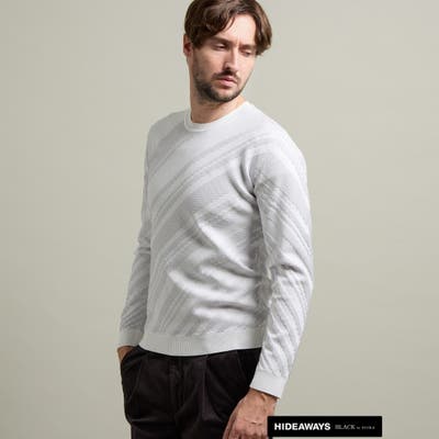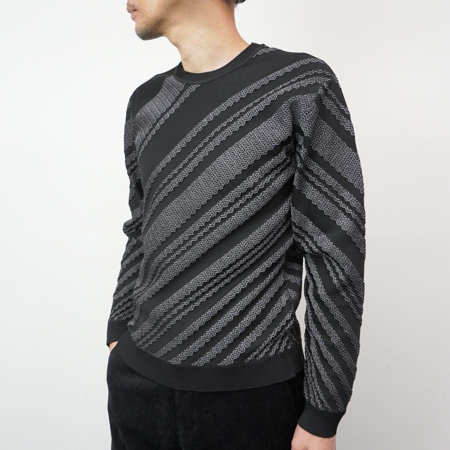 【HIDEAWAYS BLACK】バイアスリンクスジャカードクルーネックニット