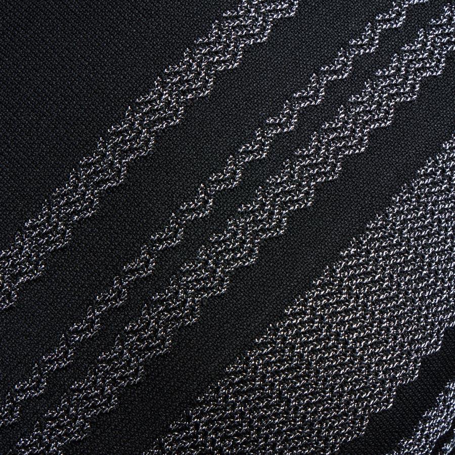 レーヨン混糸×ストレッチポリエステル糸のヘリンボーン編み地とストレッチポリエステル糸の天竺編み地を掛け合わせたボーダー柄になります。