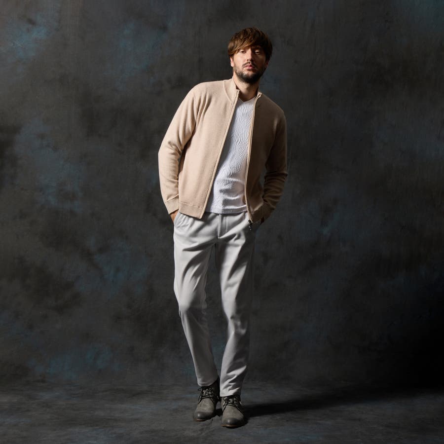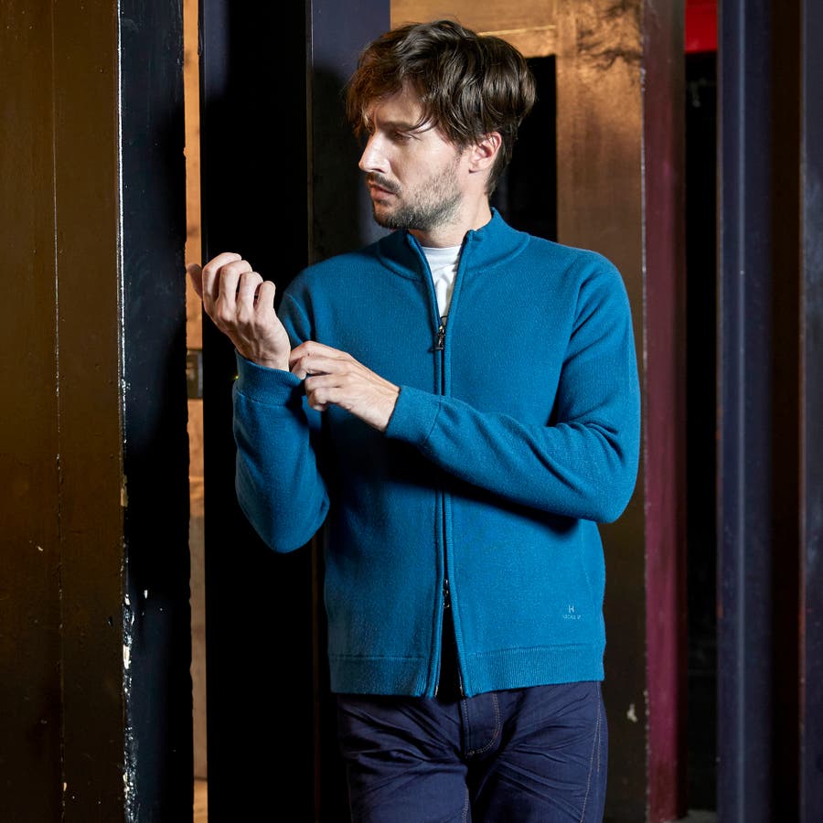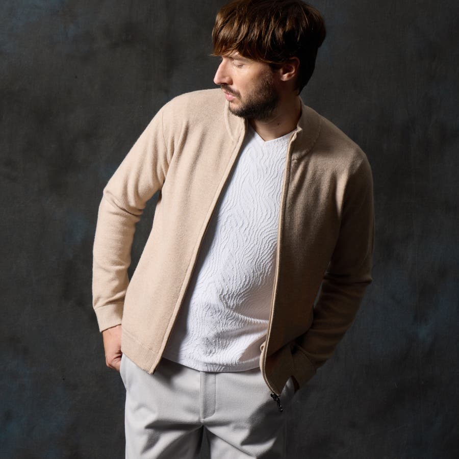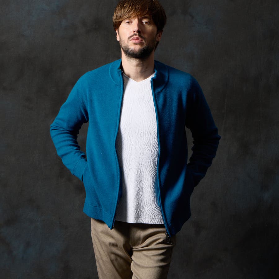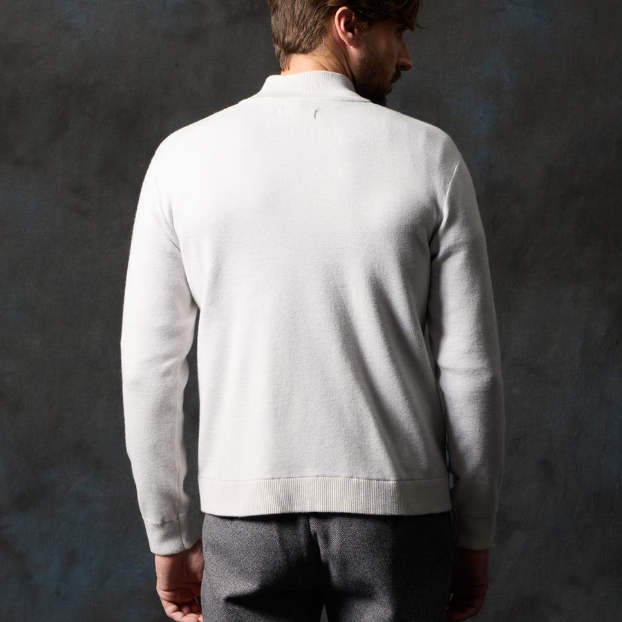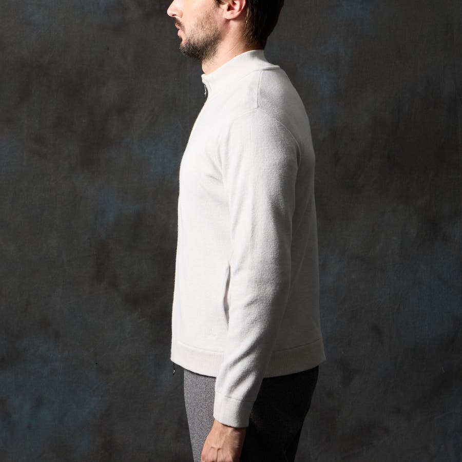 アウターとしても、コートのインナーとしても着用していただける汎用性の高いブルゾンニットになります。