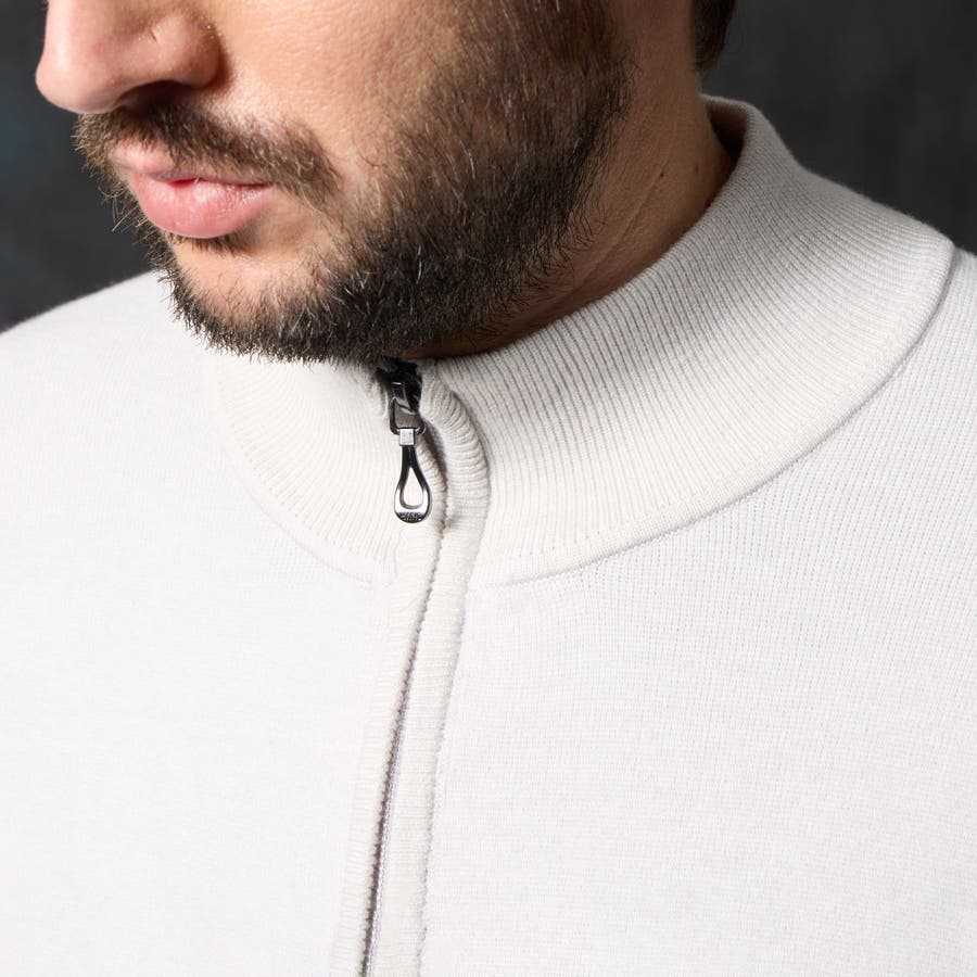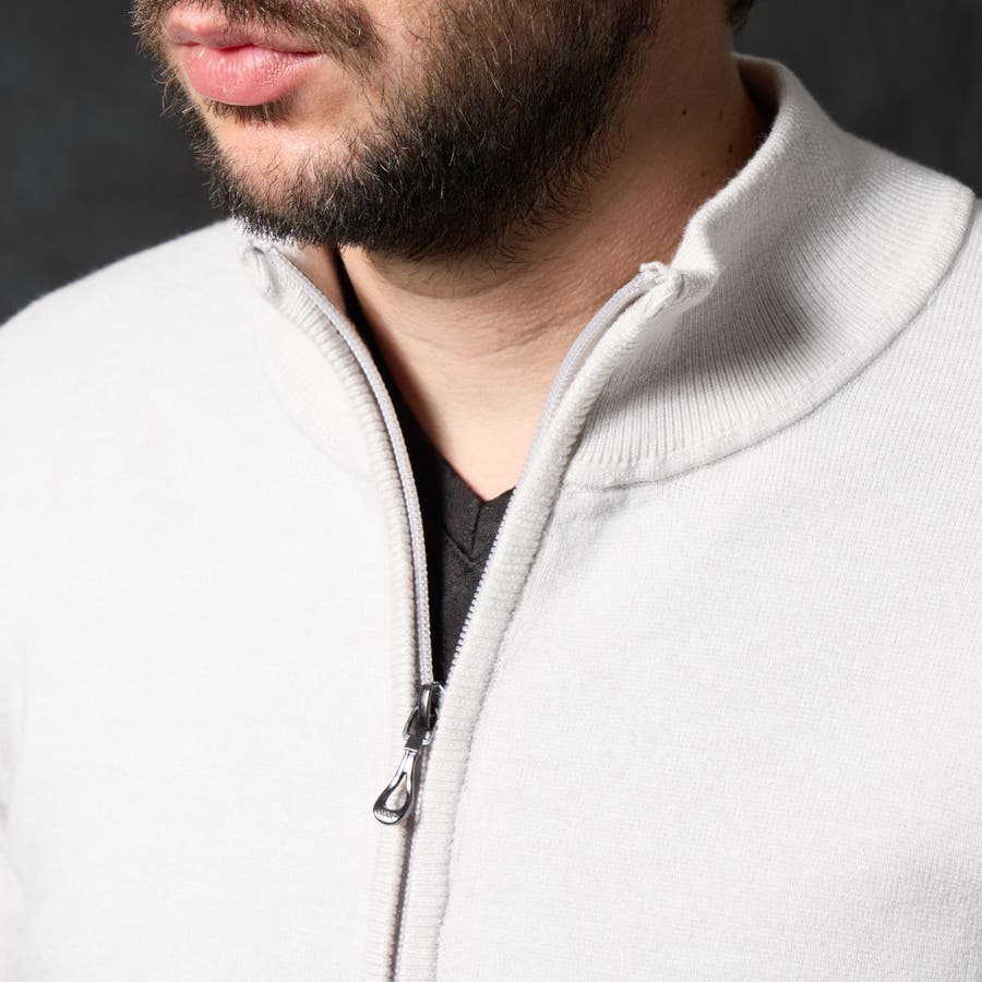 柔らかく、もっちりした風合いで肌触りのいい、ミラノリブ編みで仕上げたスタンドフルジップブルゾンニットになります。