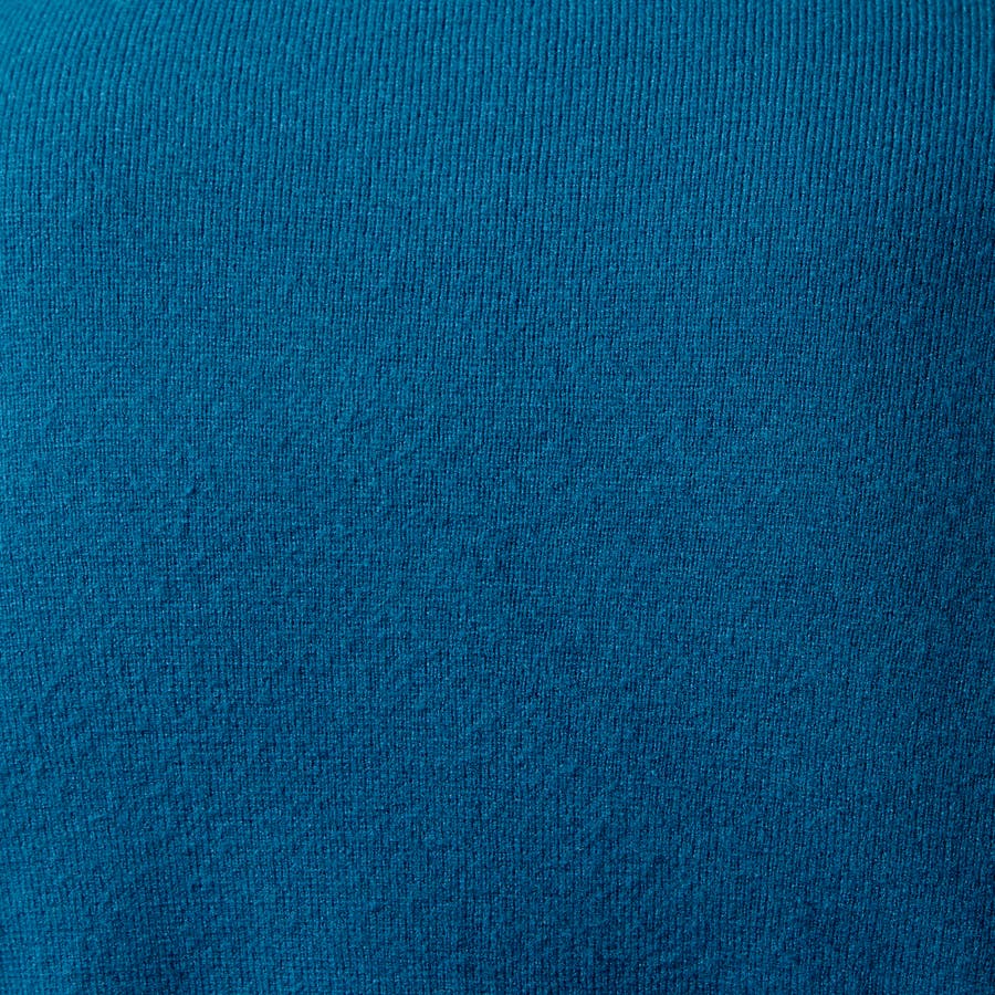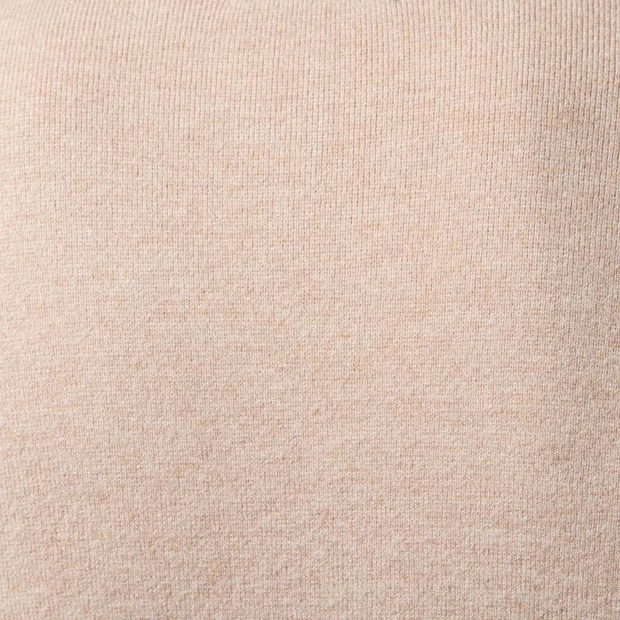 レーヨン/ポリエステル/ナイロンの3者混糸を1本取りでミラノリブ編みで仕上げています。