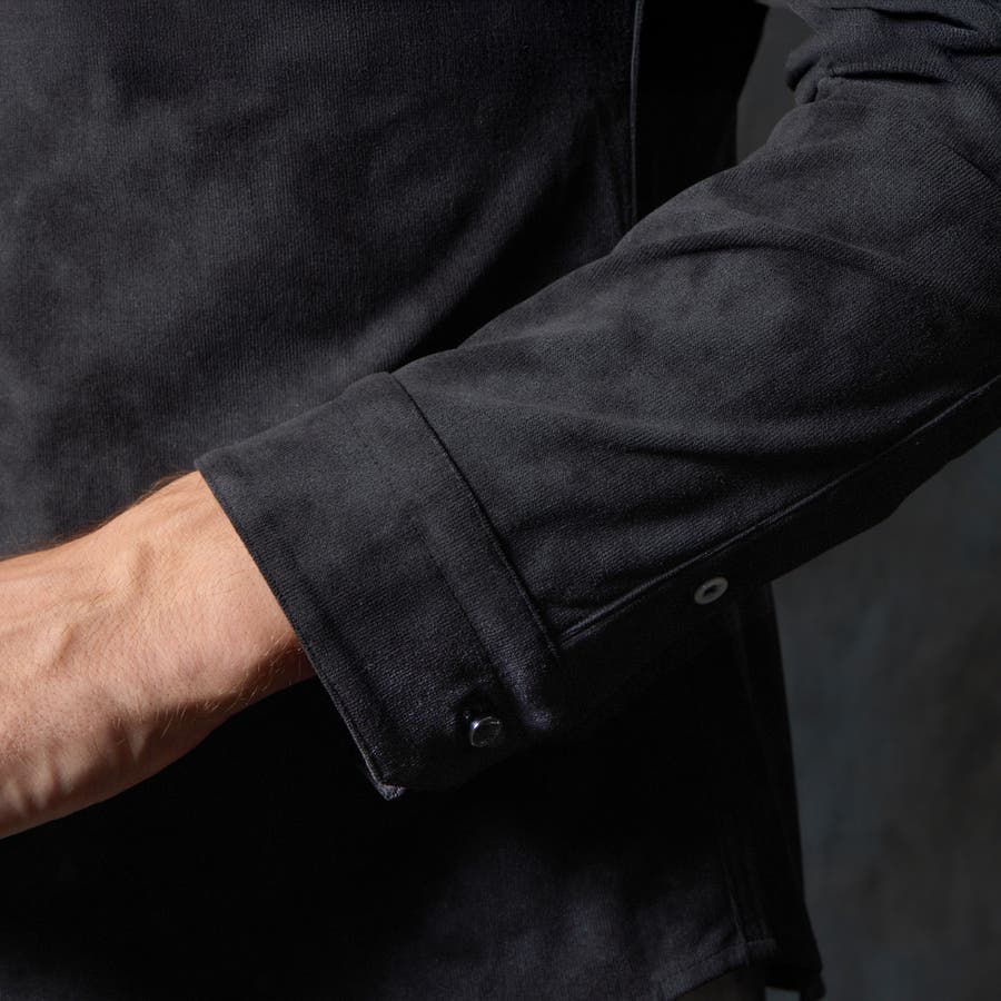 ポリエステルのマイクロファイバ-で編まれたタテ畝のカットソーに起毛を施したニットコーデュロイ素材を採用。