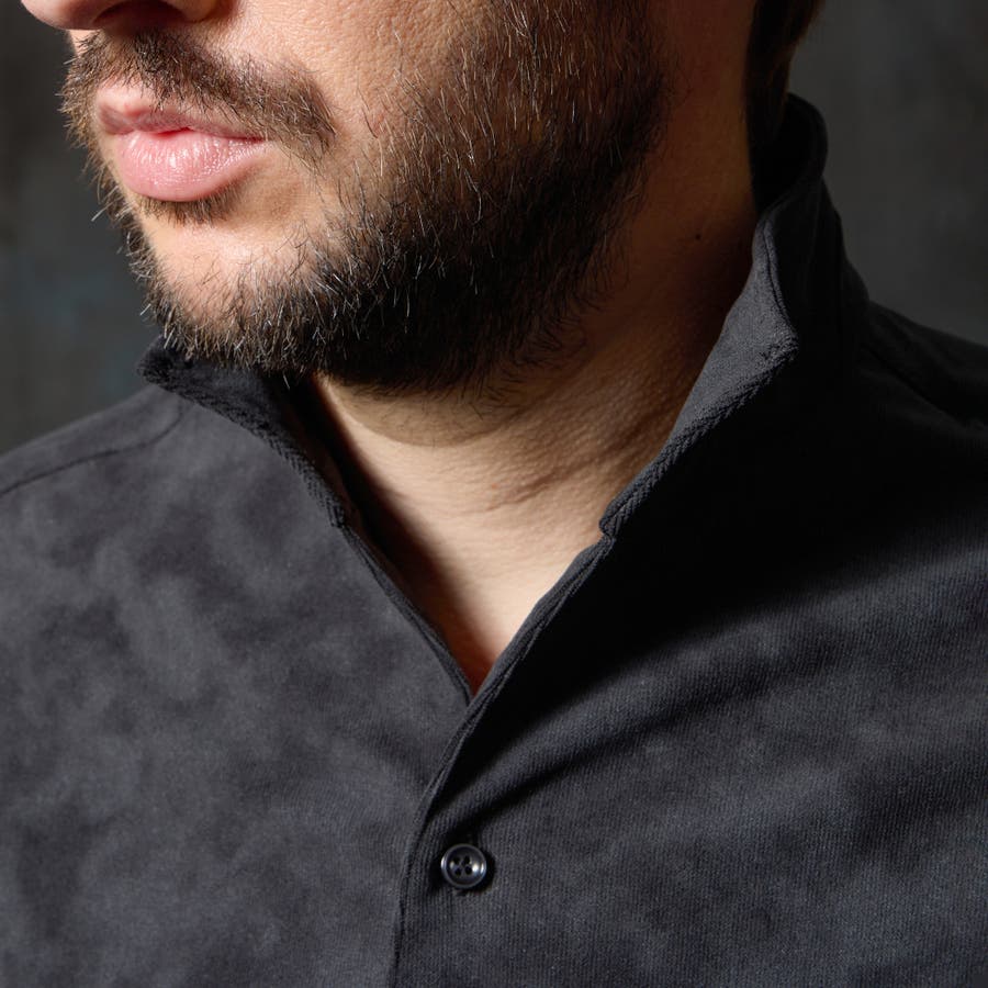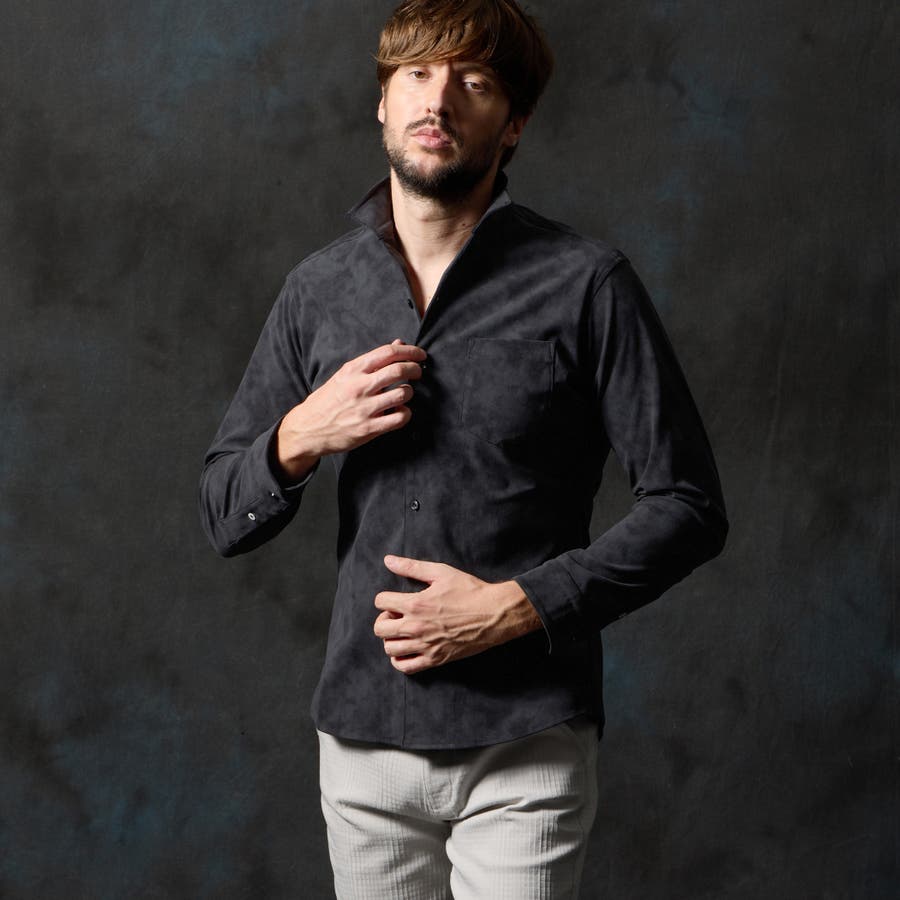 プリント素材を使用したイタリアンカラーシャツです。