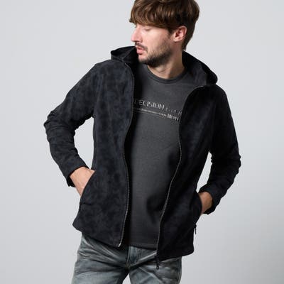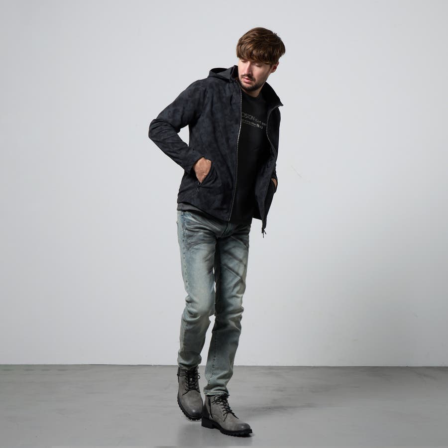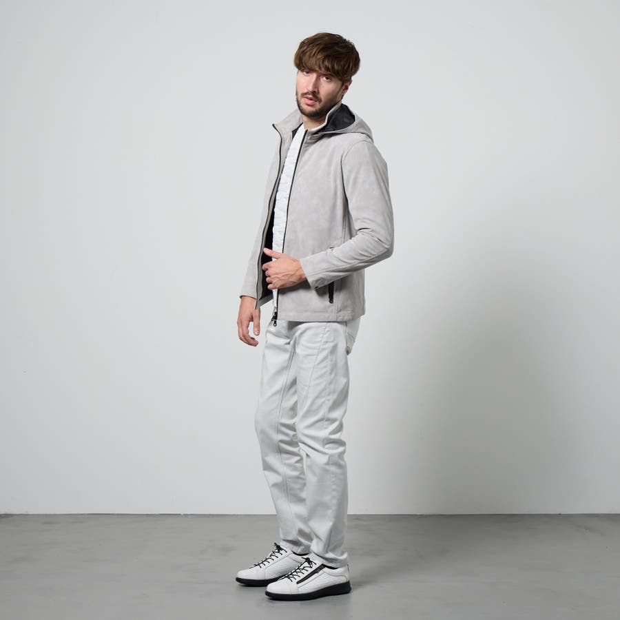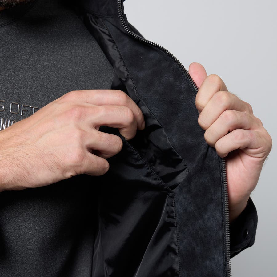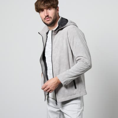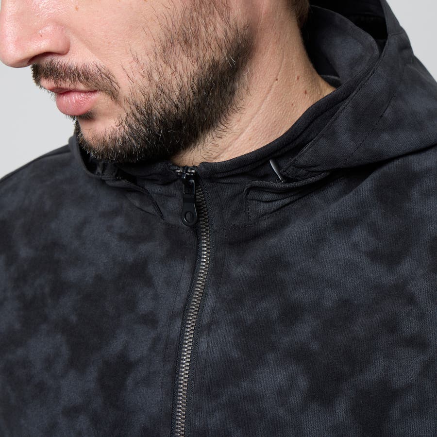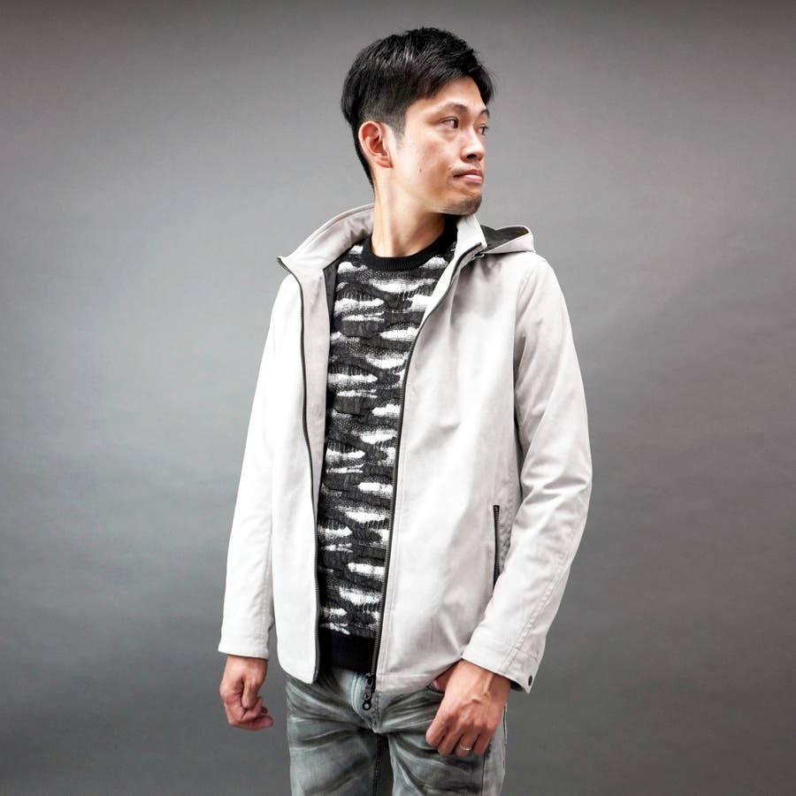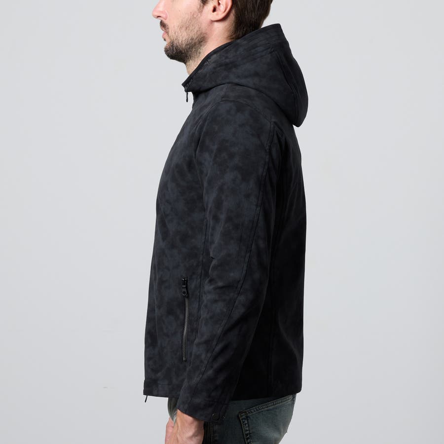 フード着脱仕様のスタンドジップブルゾン。