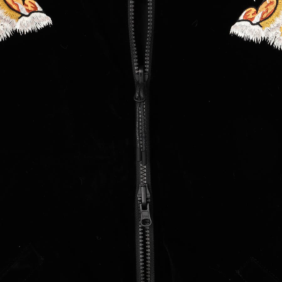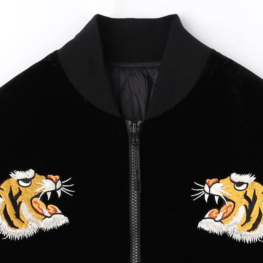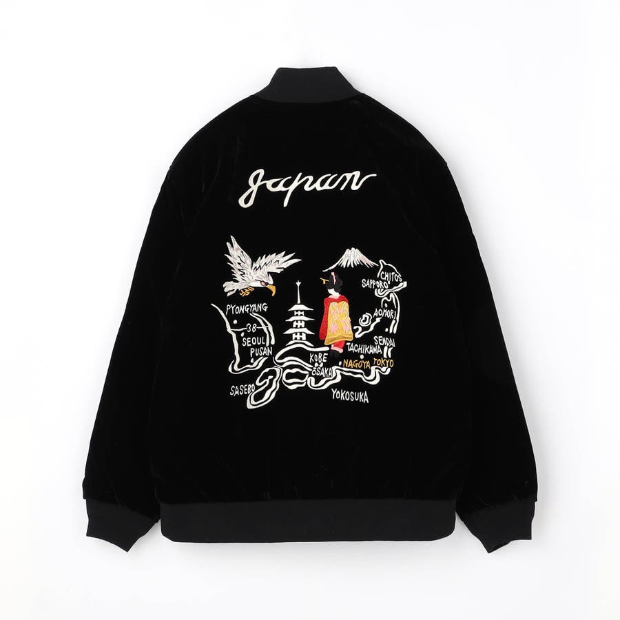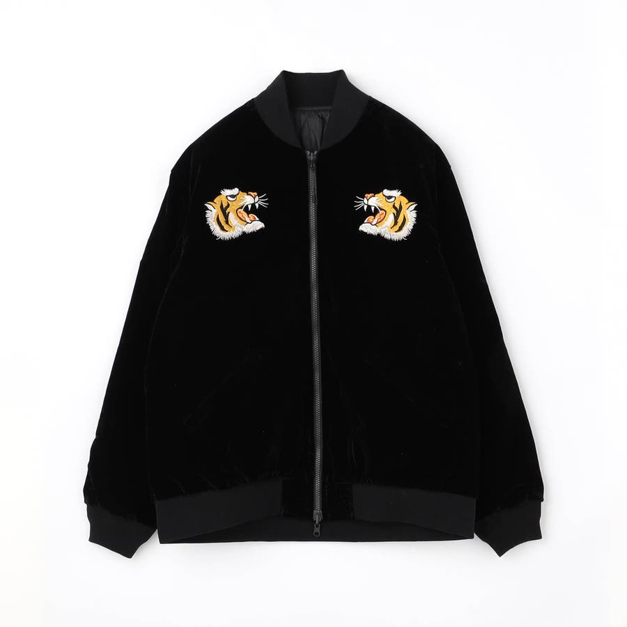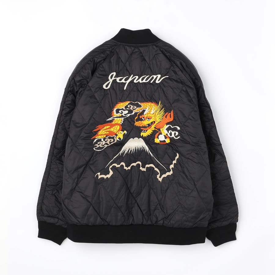 スカジャンとダウンを組み合わせた、スカジャン風リバーシブルダウンジャケット。