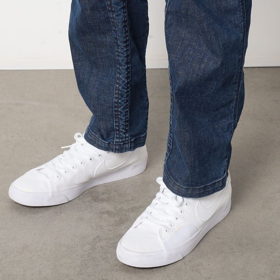 膝を絞らず、直線的な細身のテーパードシルエット。