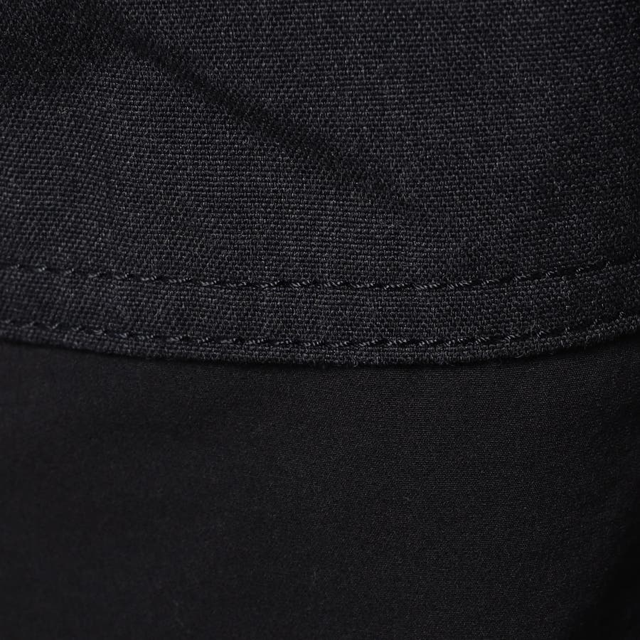 溶けてしまったナイロンやポリエステルの補修は非常に難しい。そういった点を踏まえてコットンライクなポリエステル生地に難燃素材アラミドを配合する事で高い難燃性、耐熱性に加えて引き裂きや摩擦などに強い素材になっています。