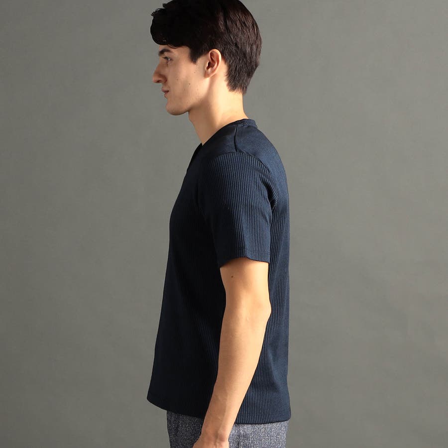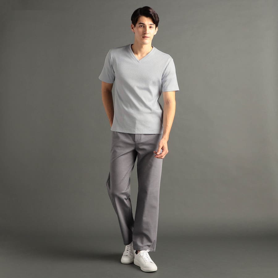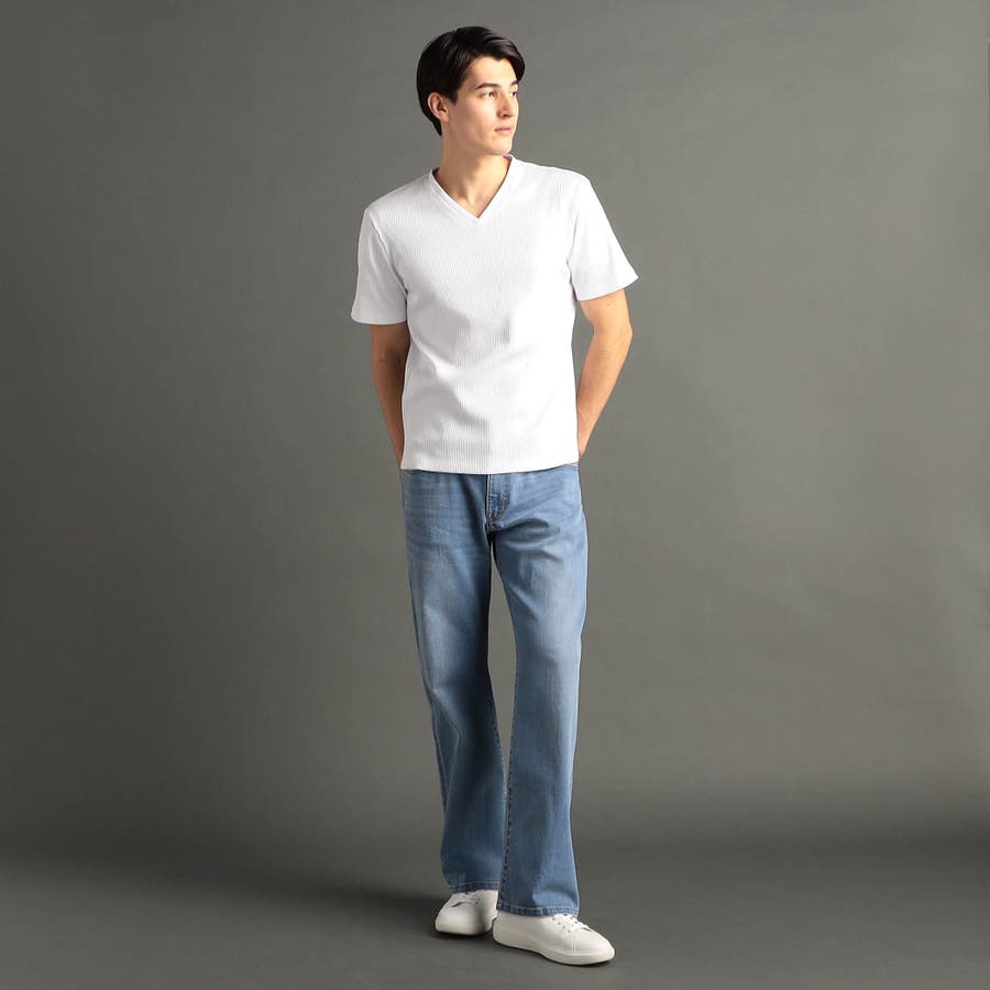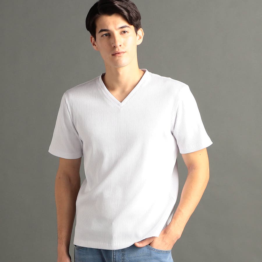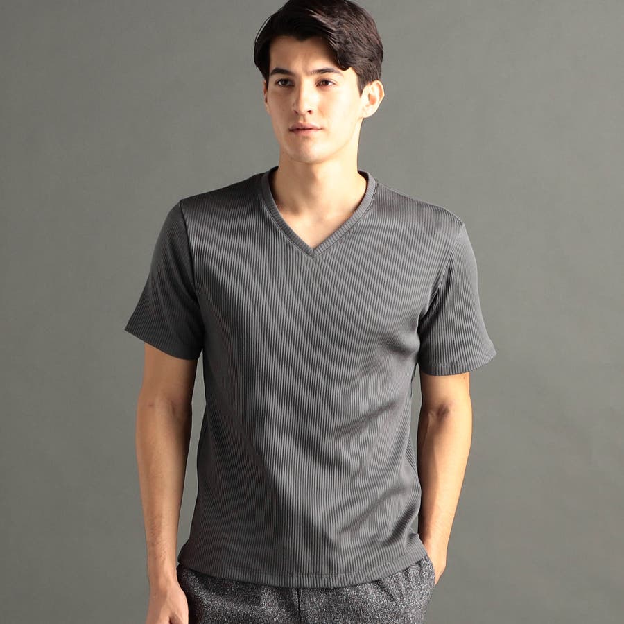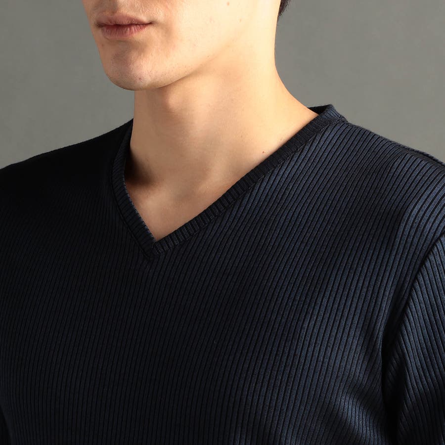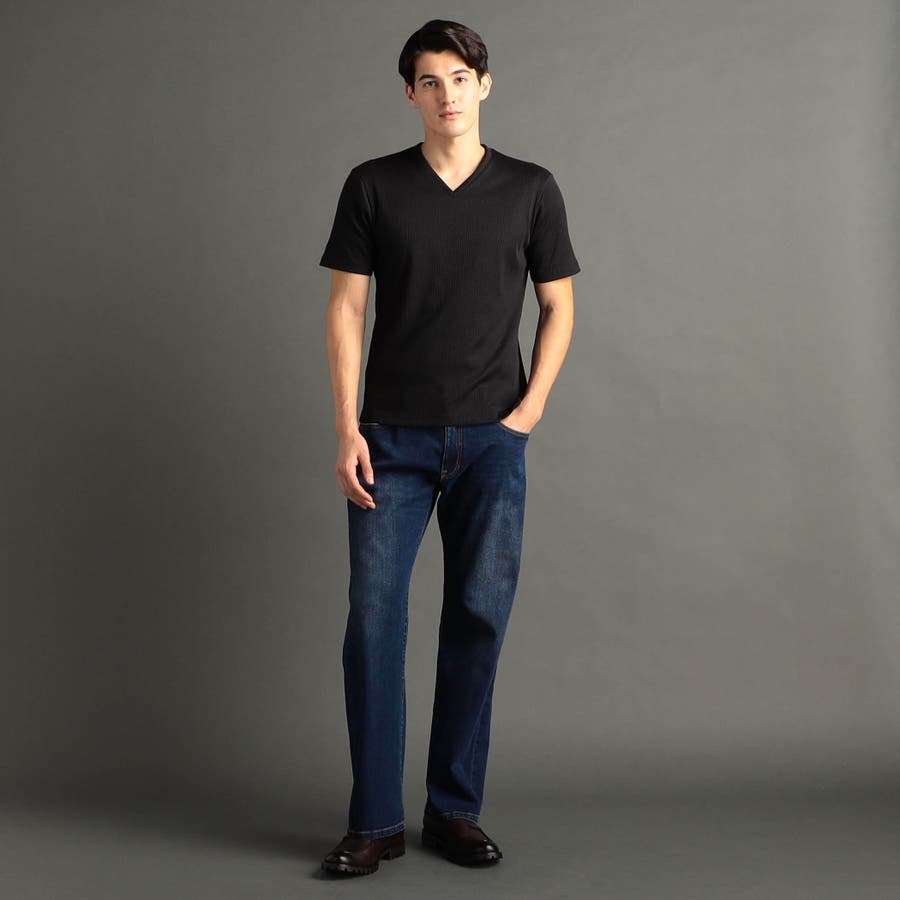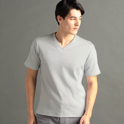 程よい開きのVネックとボディにフィットするスマートなシルエットが魅力。インナーはもちろん、一枚でも様になる定番カットソー。