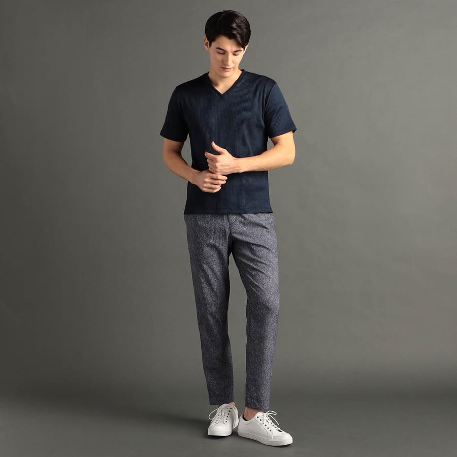 シンプルで着回しが抜群のVネックTシャツ。