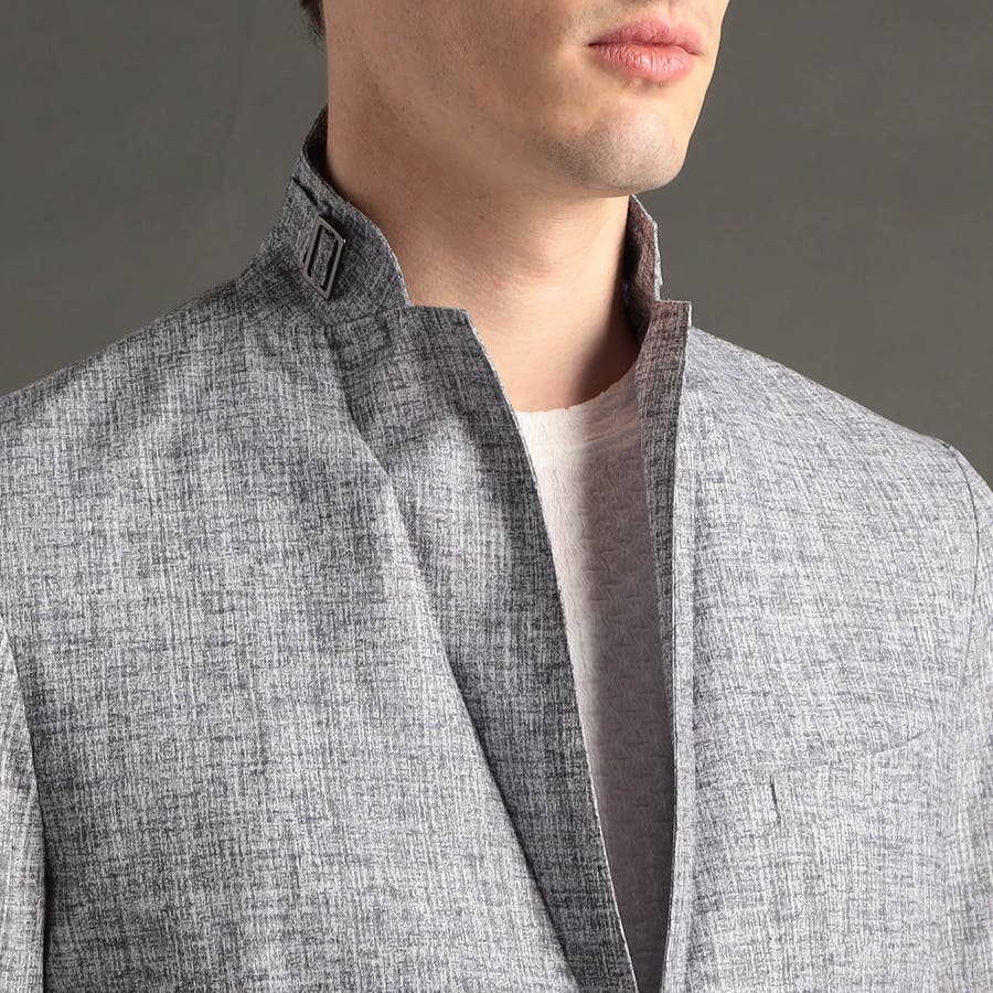 衿裏に、飾りタブを隠しアクセントとして装備した、ノーフラップポケットジャケット。