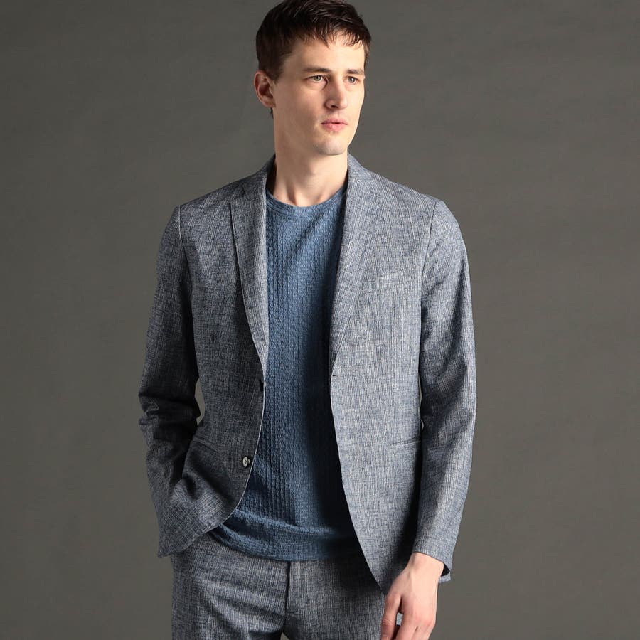 絶妙な凹凸感と、レーヨンの混紡により、ドライタッチ感と滑らかさを両立したテクニカル素材。