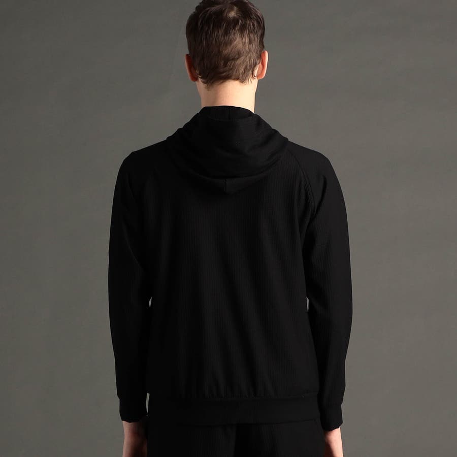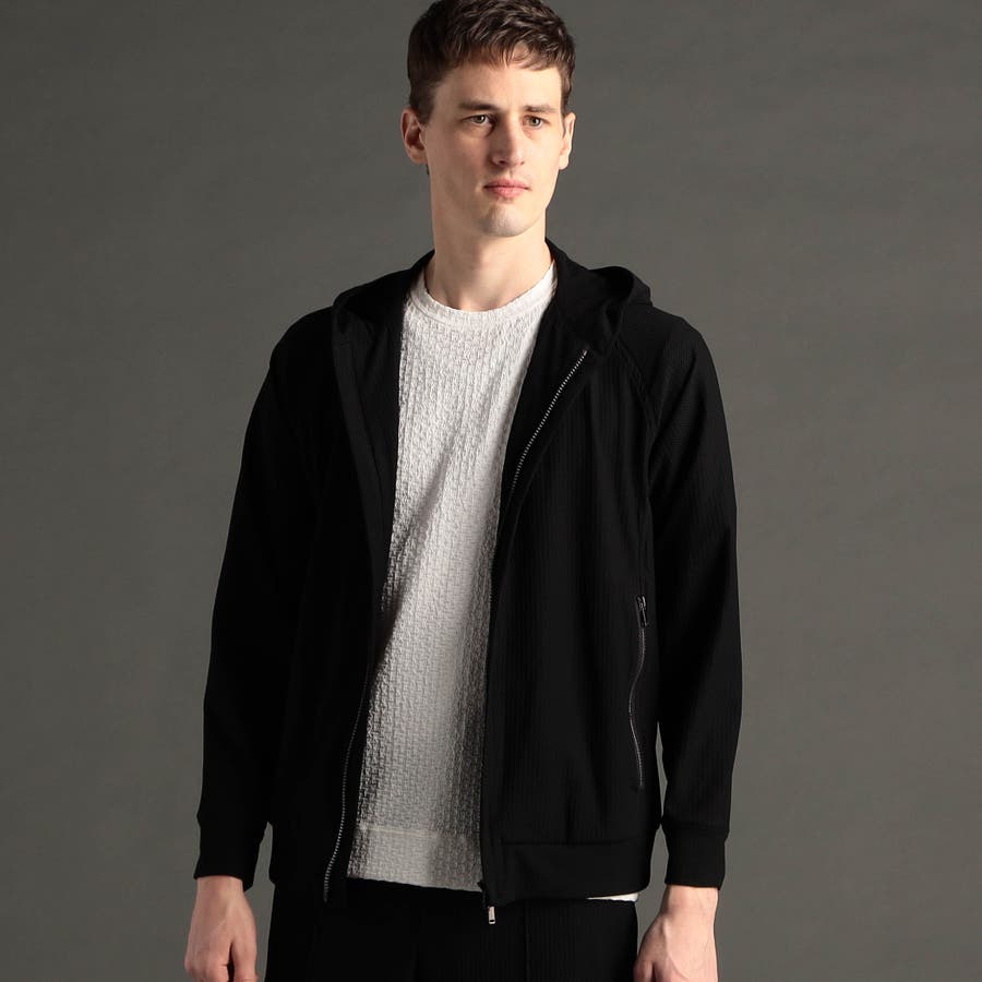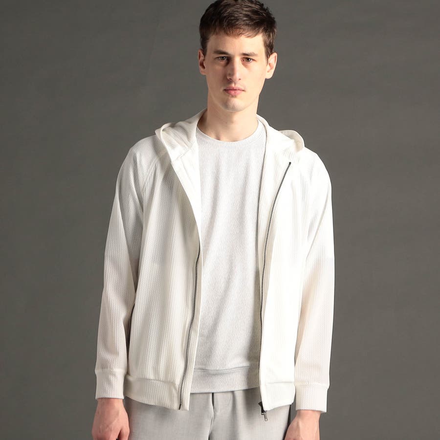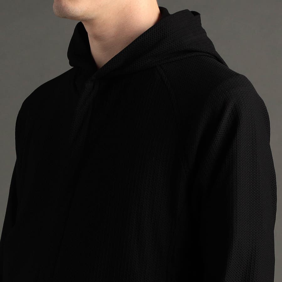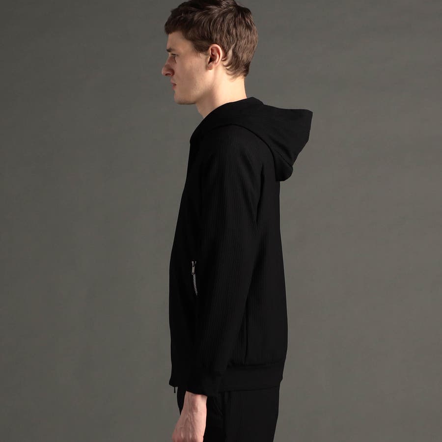 光沢ファスナーを、フロントと腰ポケットにあしらい、リラックスしたシルエットにアップデートしたフーディ。