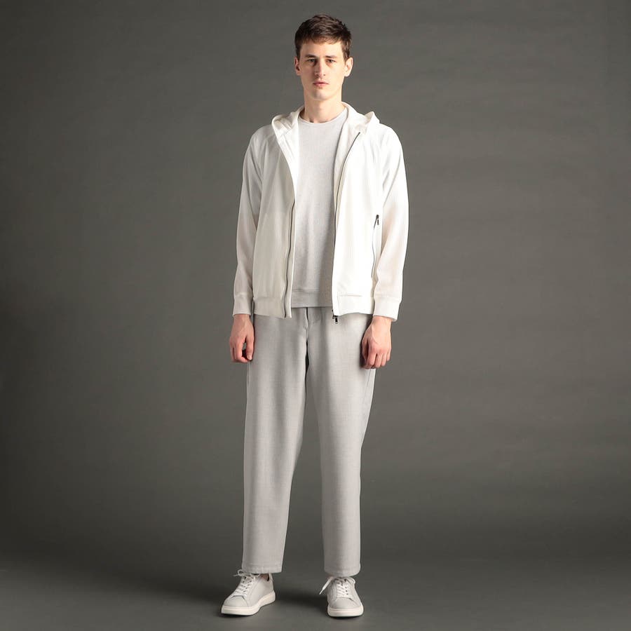 絶妙な肉感と張り感で、シルエットを際立たせるボトム素材。クリーンなトップグレーと、ソリッドなブラックを用意。