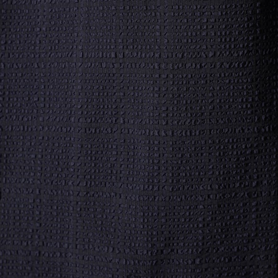 ポリエステルのシアサッカー素材。チェック柄に織られたドビー組織になります。