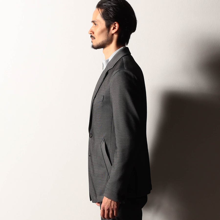 ラペルからフロントカットのデザインを直線的に作り、ウエストをシェイプさせた綺麗なシルエットで、シャープさを強調したデザインジャケットです。