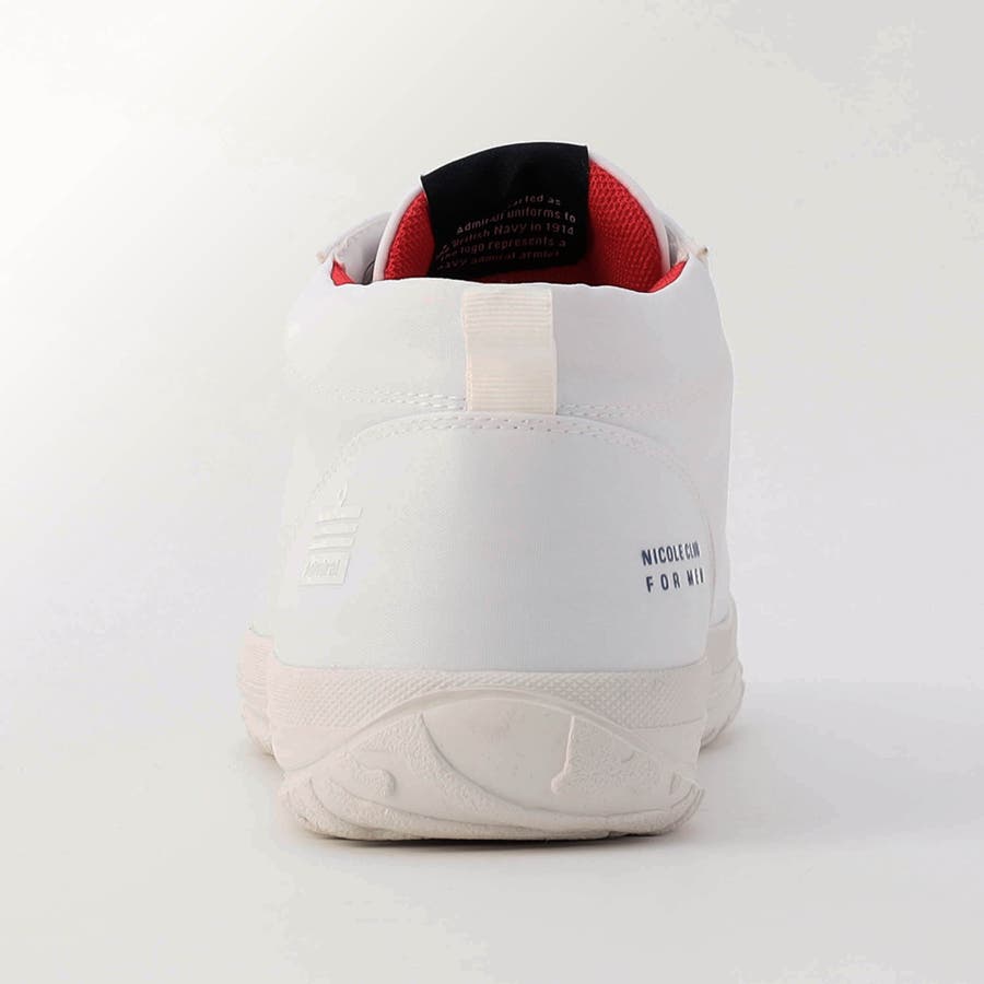木型やソール、アッパー素材はインラインそのままですが、フォーメンコラボネームを付け、かかとの内側にはブランドロゴを印字、オリジナルハトメにシューレースには別注デュブレを通し、赤のライニングに変更する事でトリコロール配色を意識したオリジナリティの高いスニーカーに仕上げました。