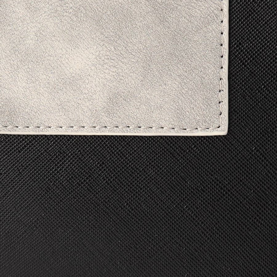 本体には光沢感のある上質な見栄えのサフィアーノ調合成皮革を採用。フロントの別生地切替にはムラ調合皮を使用して上品さ漂うアクセントにしています。